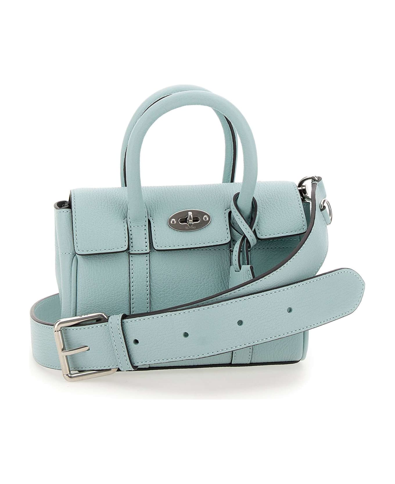 Mulberry shiny goat embossed leather handbag "MiniBayswater", green water, teal,padlock fastening, silver metallic finishes, double top handle, one main compartment, internal slip pockets, logoed keychain,adjustable and removable leather shoulder strap, PU lining,shoulder strap drop 47-57cm. Dimensions: length 17cm, height 14cm, depth 8cm.