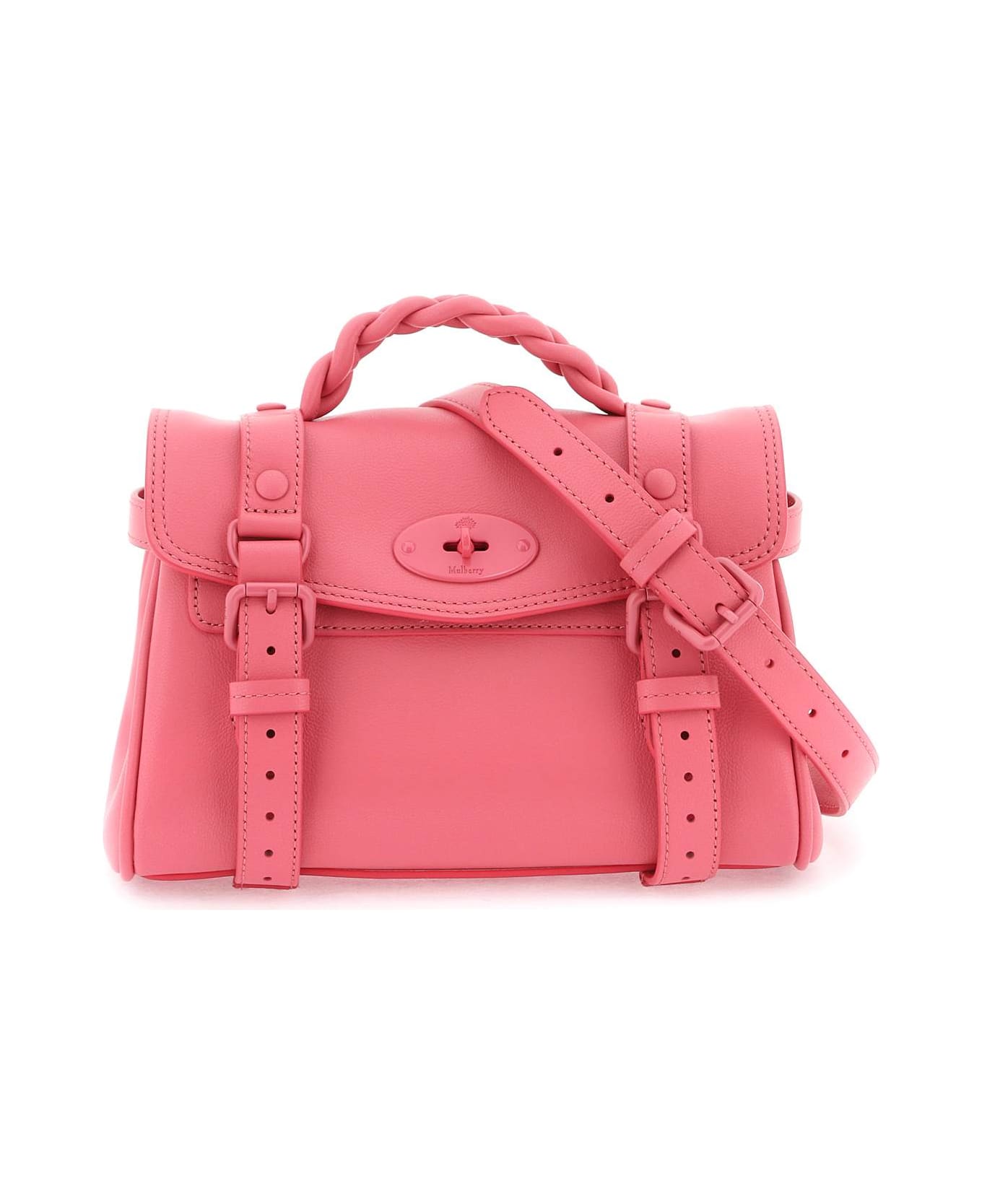 Mulberry Alexa Mini bag in micro grained leather characterized by a single handle in braided leather. Flap with the iconic Postman's Lock logoed metal twist closure and adjustable straps with magnetic buckles and buttons. Removable and adjustable shoulder strap, side restraint straps, herringbone fabric-lined interior with a flat pocket. Tone-on-tone metalware.