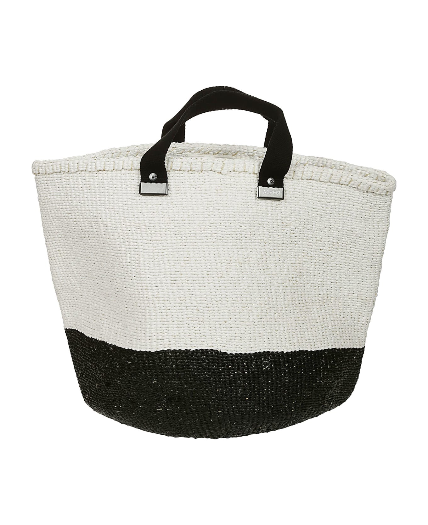 Aspesi Black and white ecological bag, made with recycled material, single compartment and handles in cotton, metal inserts, logo detail.