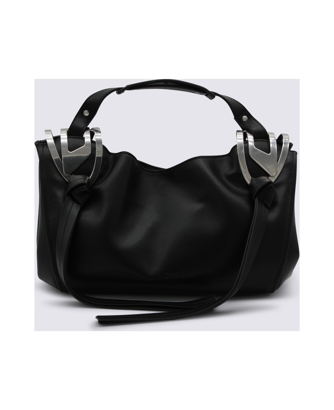 Black Knot-D top handle bag form Diesel with silver tone metal hardware, logo details, zip closure, main compartment and inside pocket.