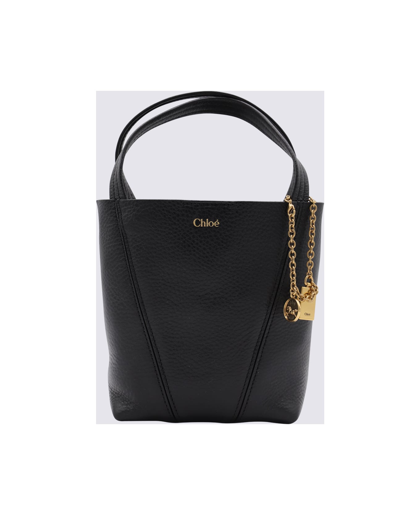 Black leather Spin tote from Chloè featuring top handles, frontal logo, gold tone detail, adjustable strap, magnetic fastening and pocket. Composition: _, 100% Le