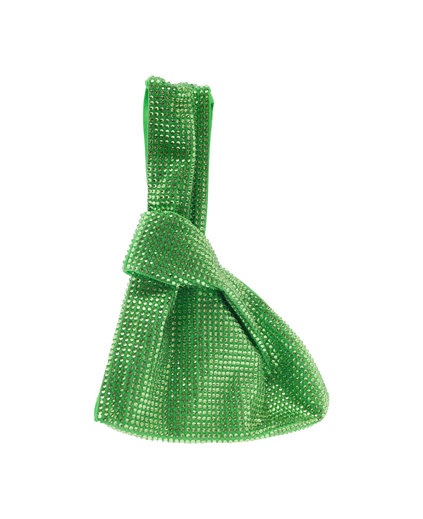 Green Bag With Wrist Strap And All-over Crystal Embellishment In Stretch Viscose Woman