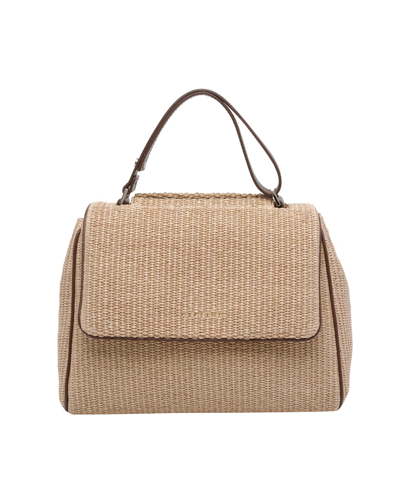 Orciani beige Medium Sveva handbag, magnetic closure, inner zipped pocket, 2 open pockets, removable and adaptable strap, rafia model Composition: 100% Raffia, Leather Trim