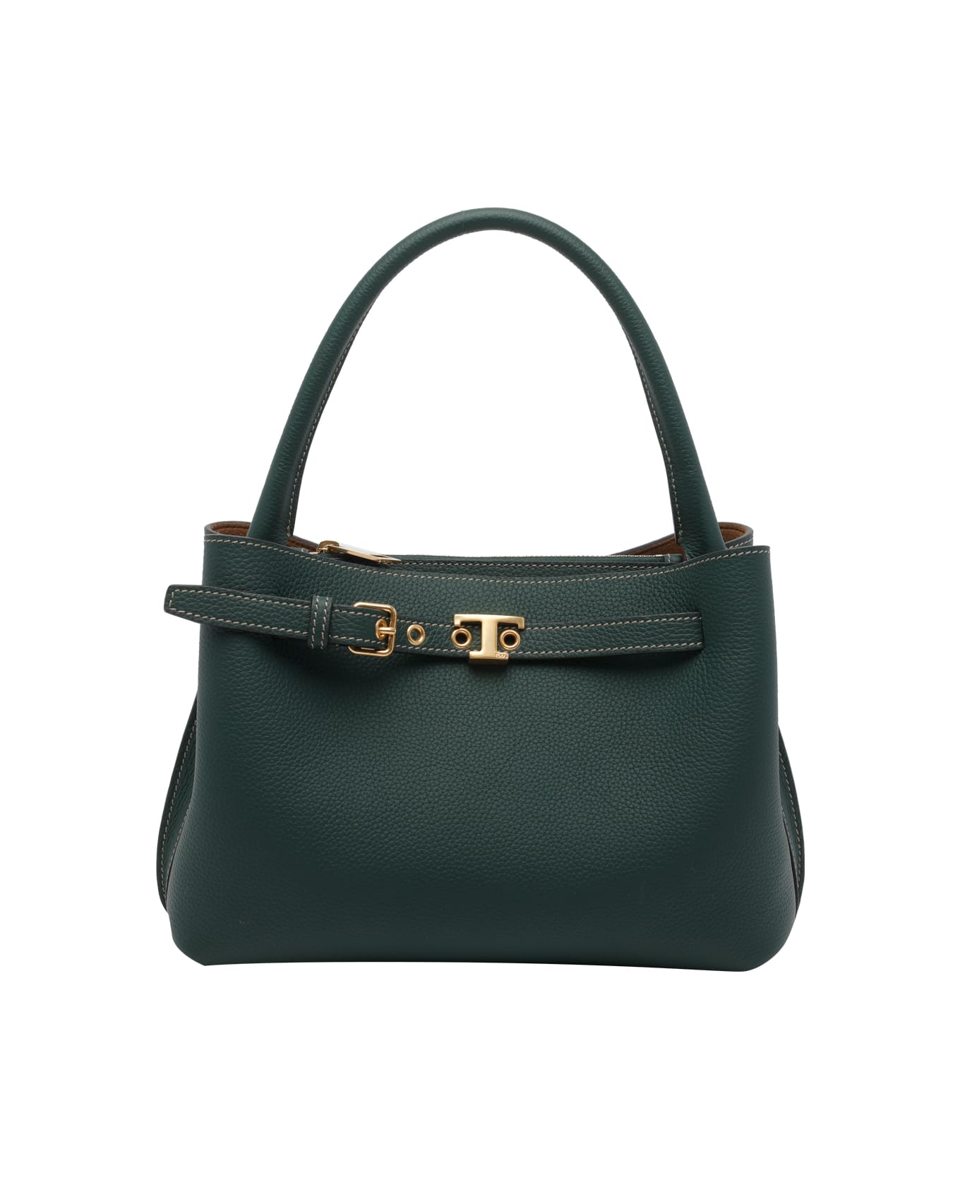 Tod's green leather handbag, interlocking closure, 2 compartments, central zip pocket, one handle, adjustable and removable shoulder strap Composition: 100% Calf Leather