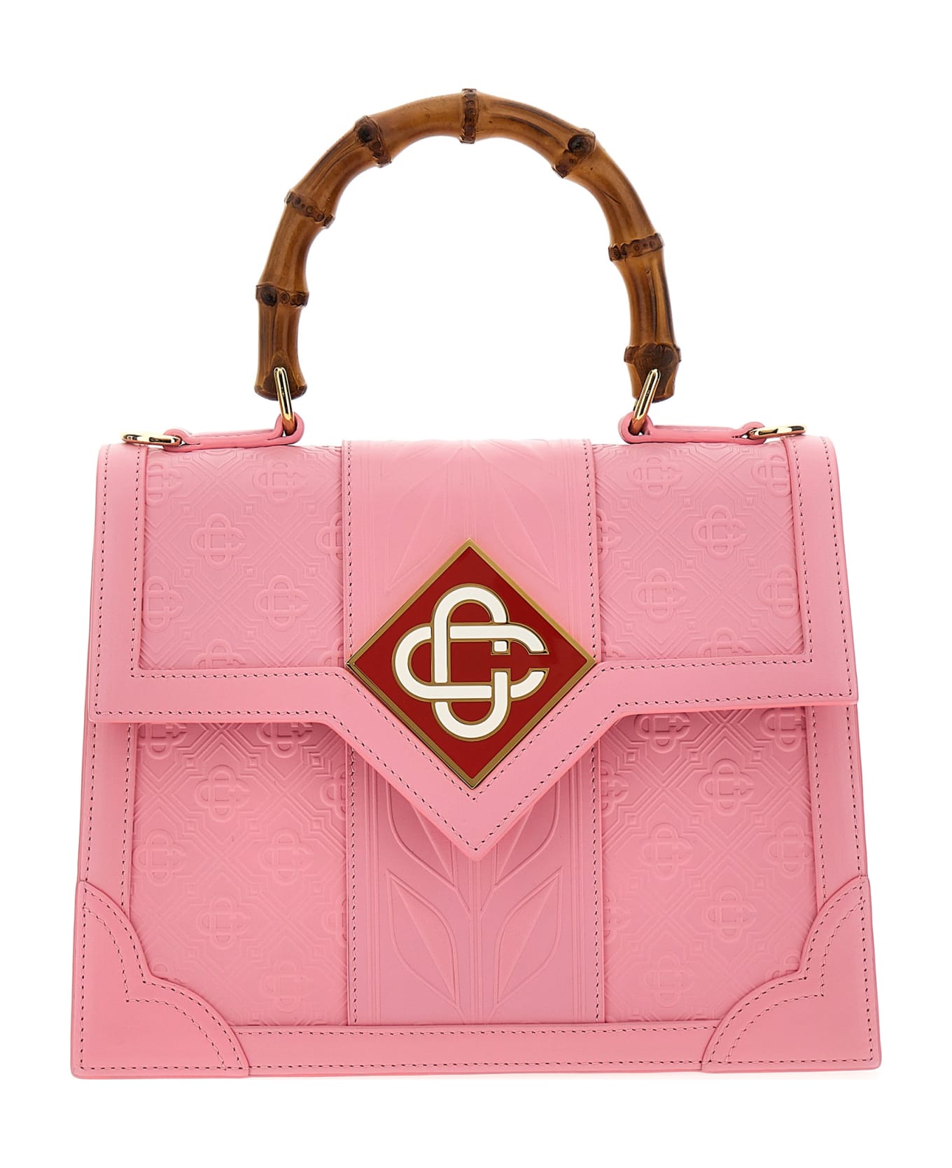 'Monogram' all-over embossed leather handbag with hook-and-eye closure, front logo application, bamboo handle and a long removable leather handle. Composition: 100% calf leather (bos taurus)