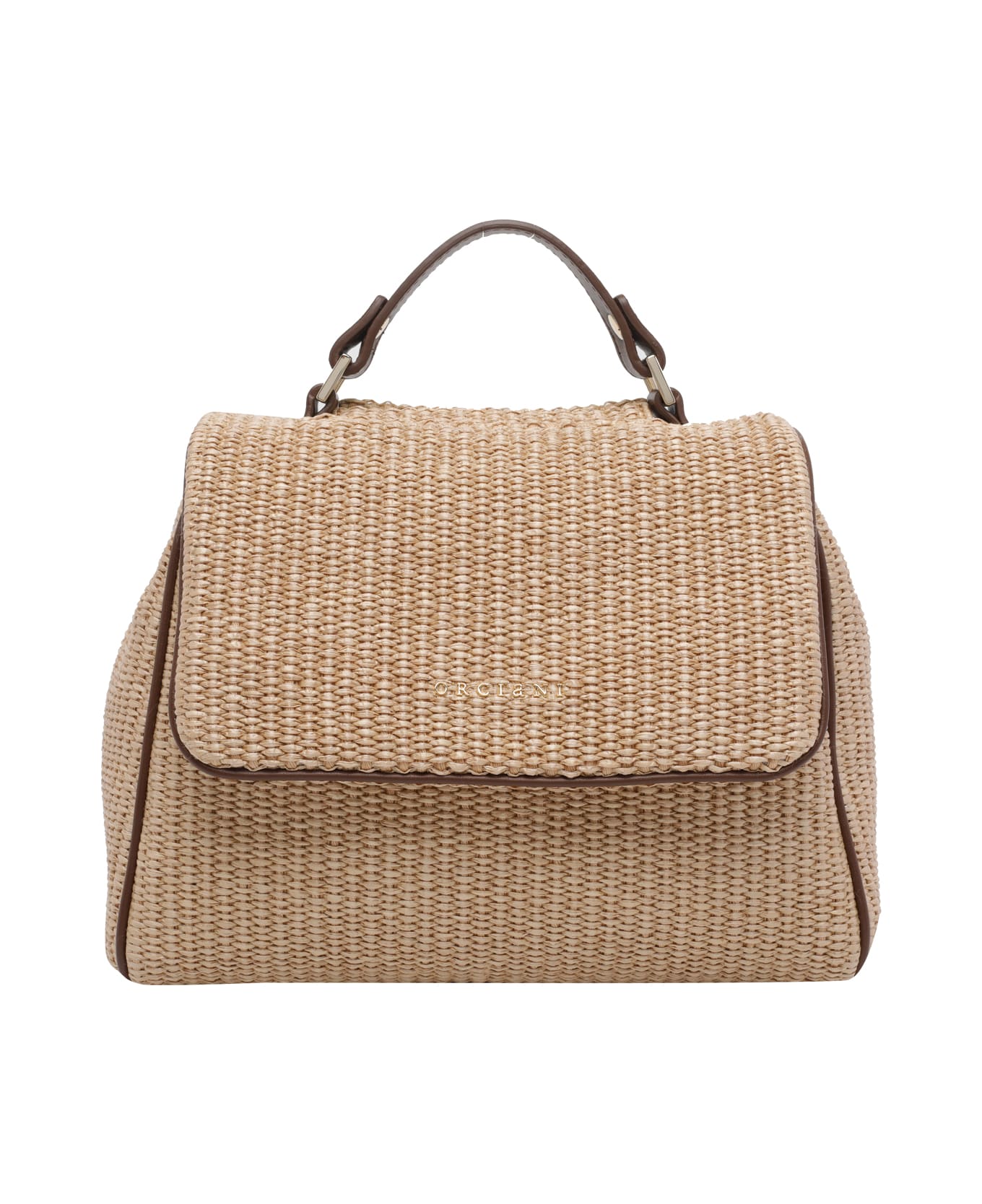 Orciani beige Small Sveva Zanzibar handbag. magnrtic closure, inner zipped pocket, open pocket, adaptable and removable strap, frontal tone on tone logo, rafia model Composition: 100% Raffia, Leather Trim