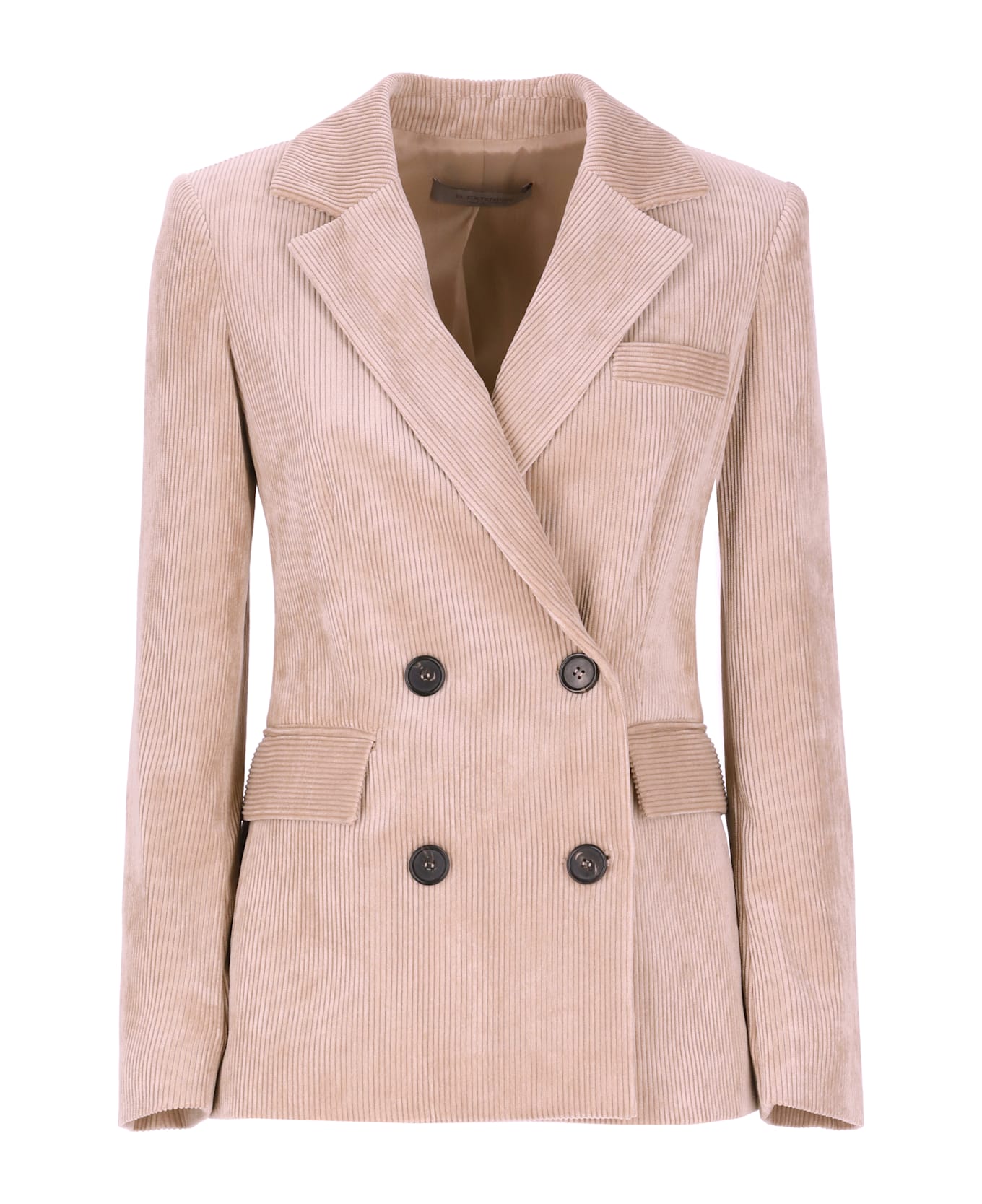 - Beige D. Exterior corduroy double breasted blazer for woman - Classic lapel collar - Long sleeves - Two front flap pockets - One chest pocket - Front buttons fastening