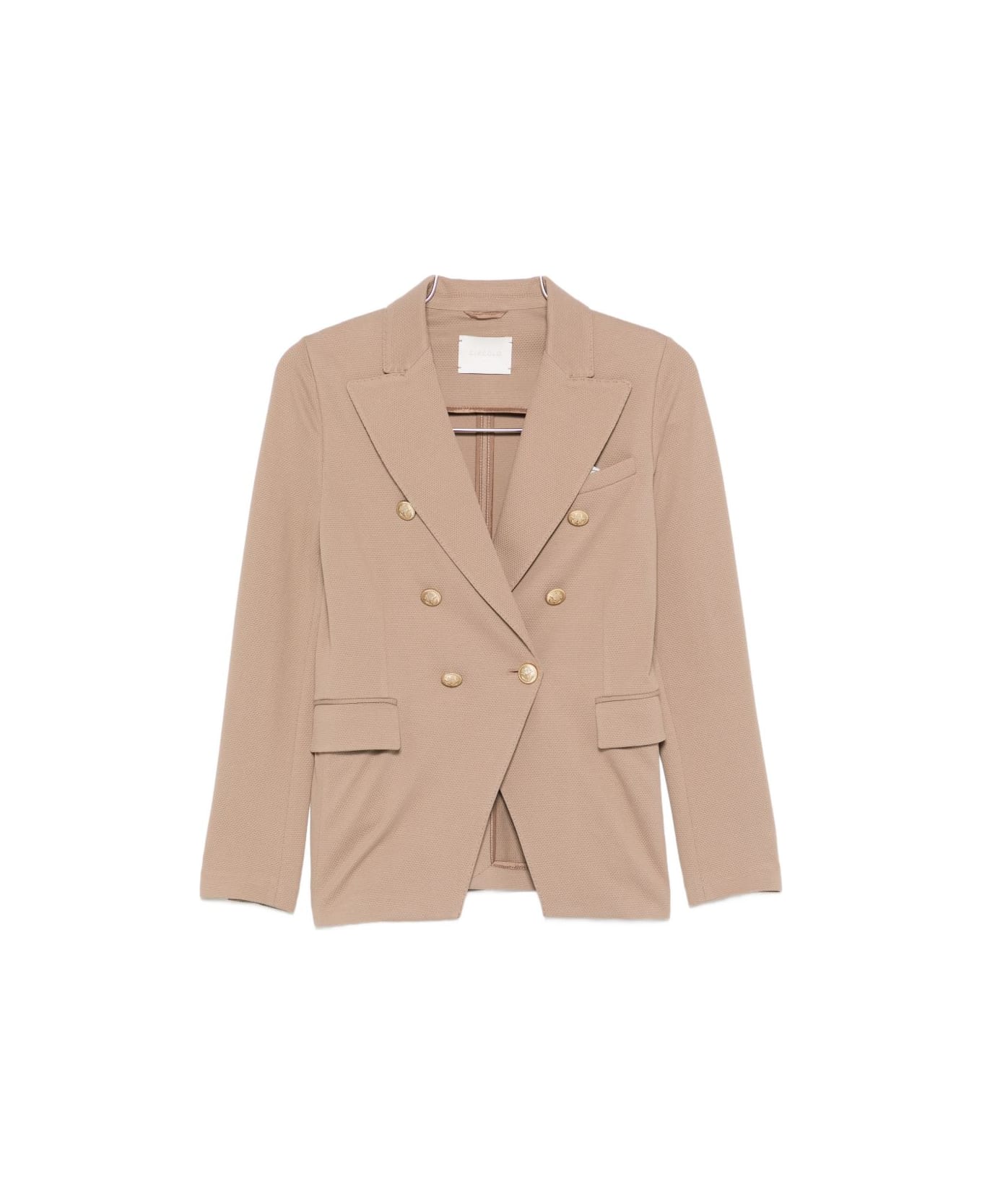 light brown gold-tone buttons textured notched lapels double-breasted flap pocket