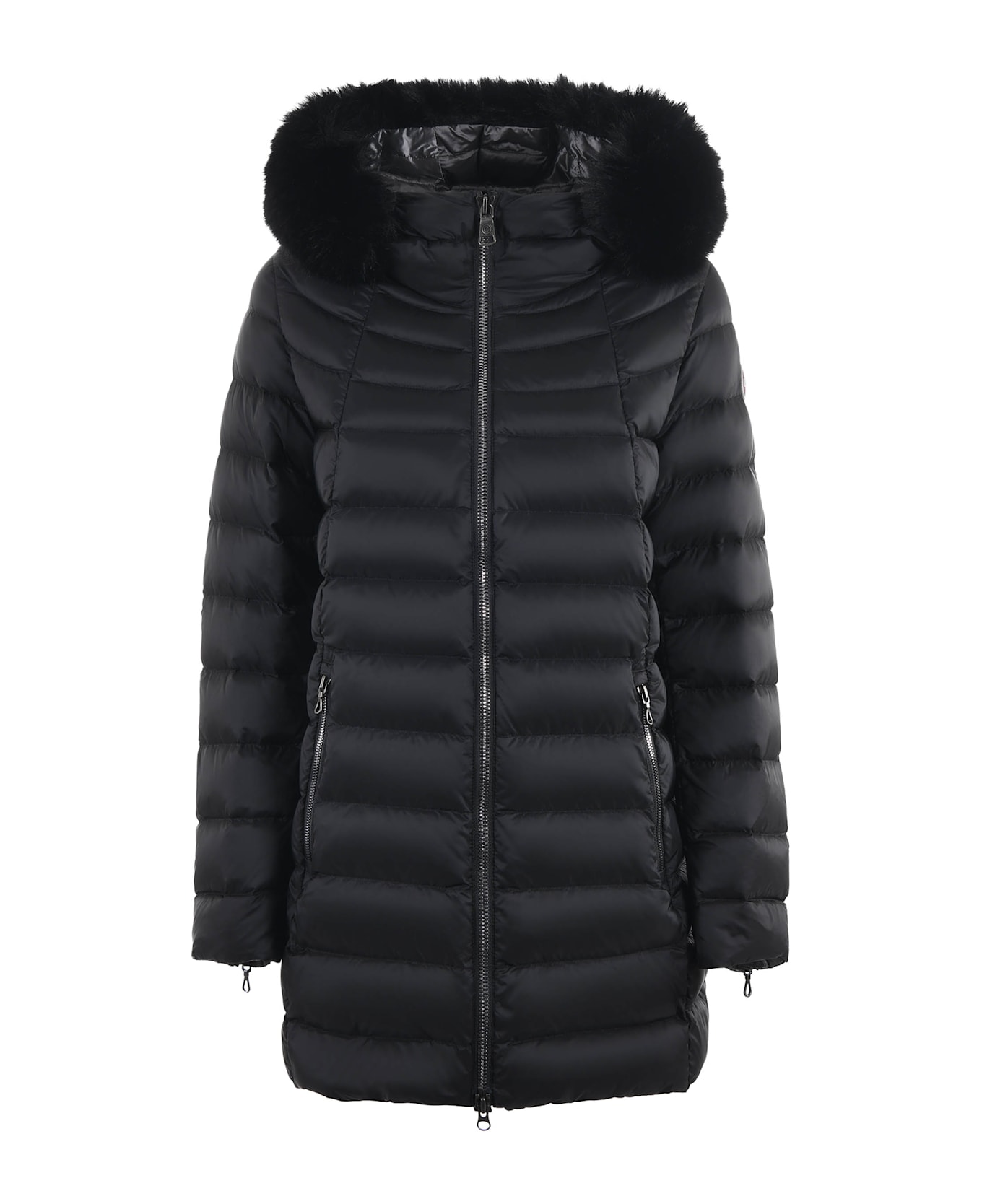 Colmar Originals down jacket in satin and quilted nylon. Medium length, oval line. Padded with goose down. Hood with removable real fur trim. Double slider zip closure. Zip pockets. Logo patch applied on the left sleeve. Size in photo 40 100% polyamide Padding: 90% duck down, 10% duck feather