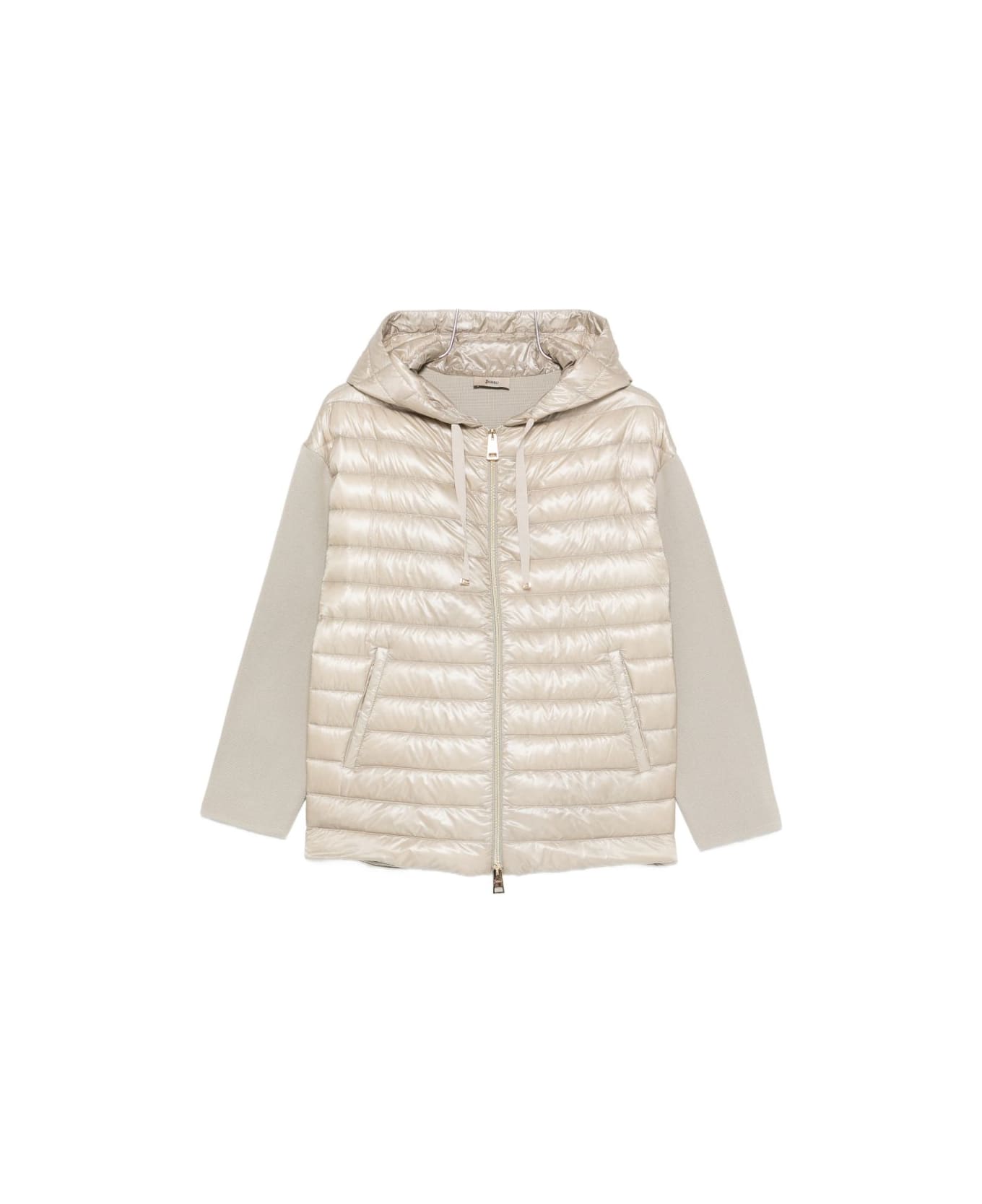 beige hood zip fastening front pockets