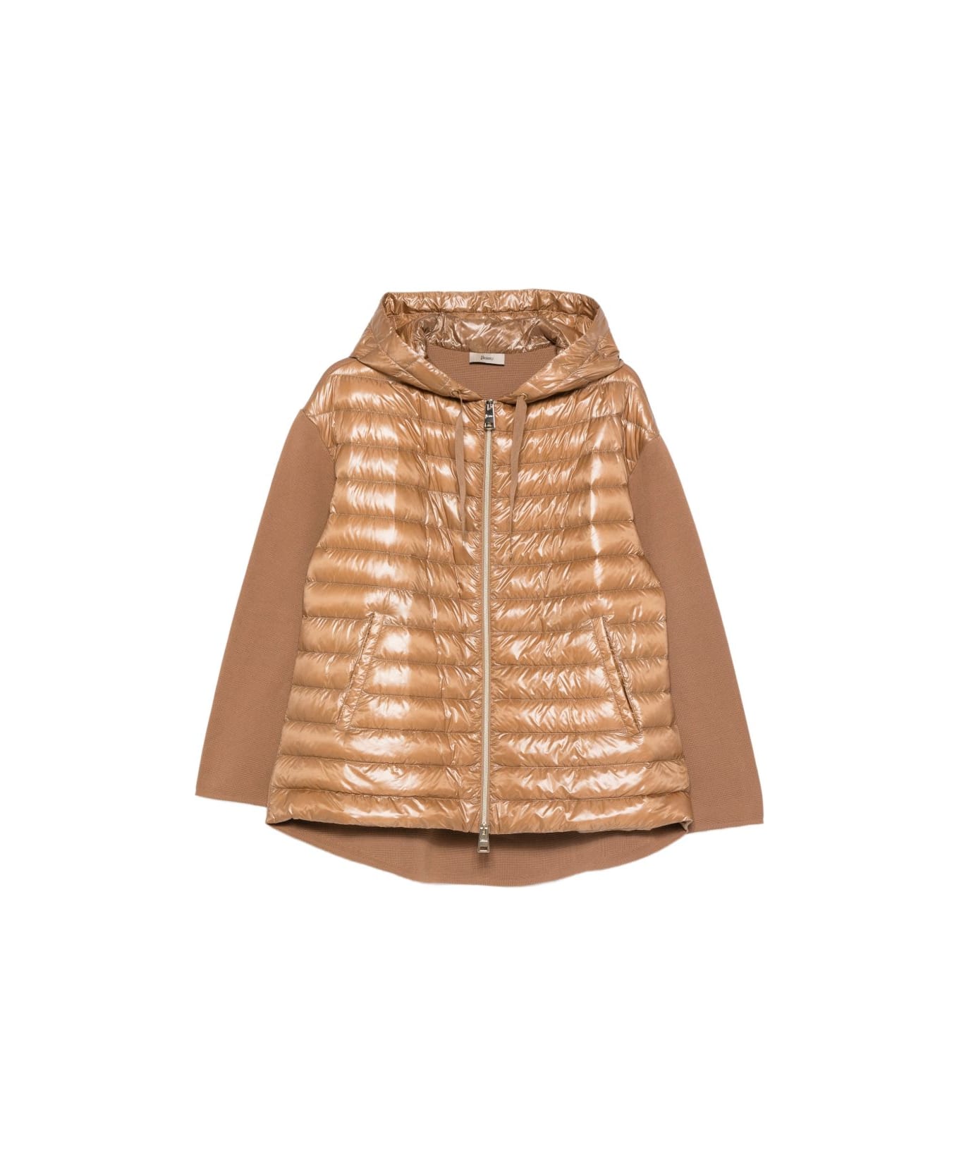 brown padded design hood zip fastening front pockets long sleeves Composition: Goose Feather, 10% , Goose Down, 90% , Polyester, 100% , Polyamide, 100% , Polyamide, 100% , Cotton, 100%