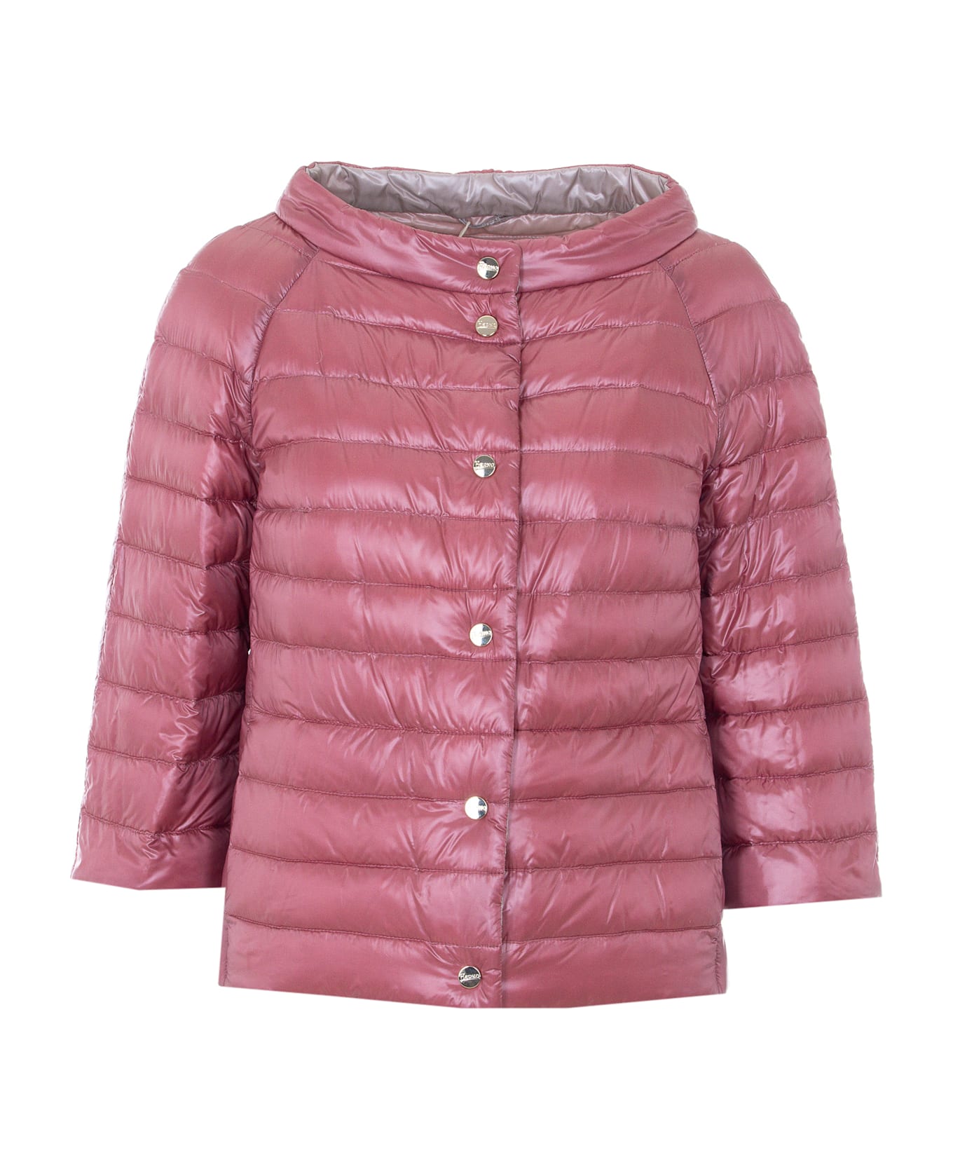 Herno pink light down jacket, buttons closure, crewneck, pockets, logo buttons closure