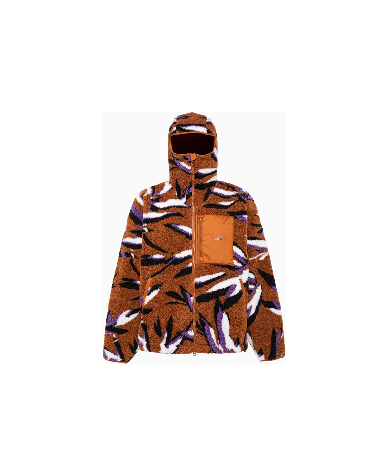 adidas by stella mccartney -jacket made from scraps or recycled materials with the utmost respect for the environment. made of pile with a three-color jacquard pattern. color matched hood. funnel neck. two-way zipper closure. color matched nylon insert with flat pocket. vertical pockets on front and flat pocket at back with zip. asmc logo printed at the pocket and back. adjustable drawstring at hem. loose fit. .