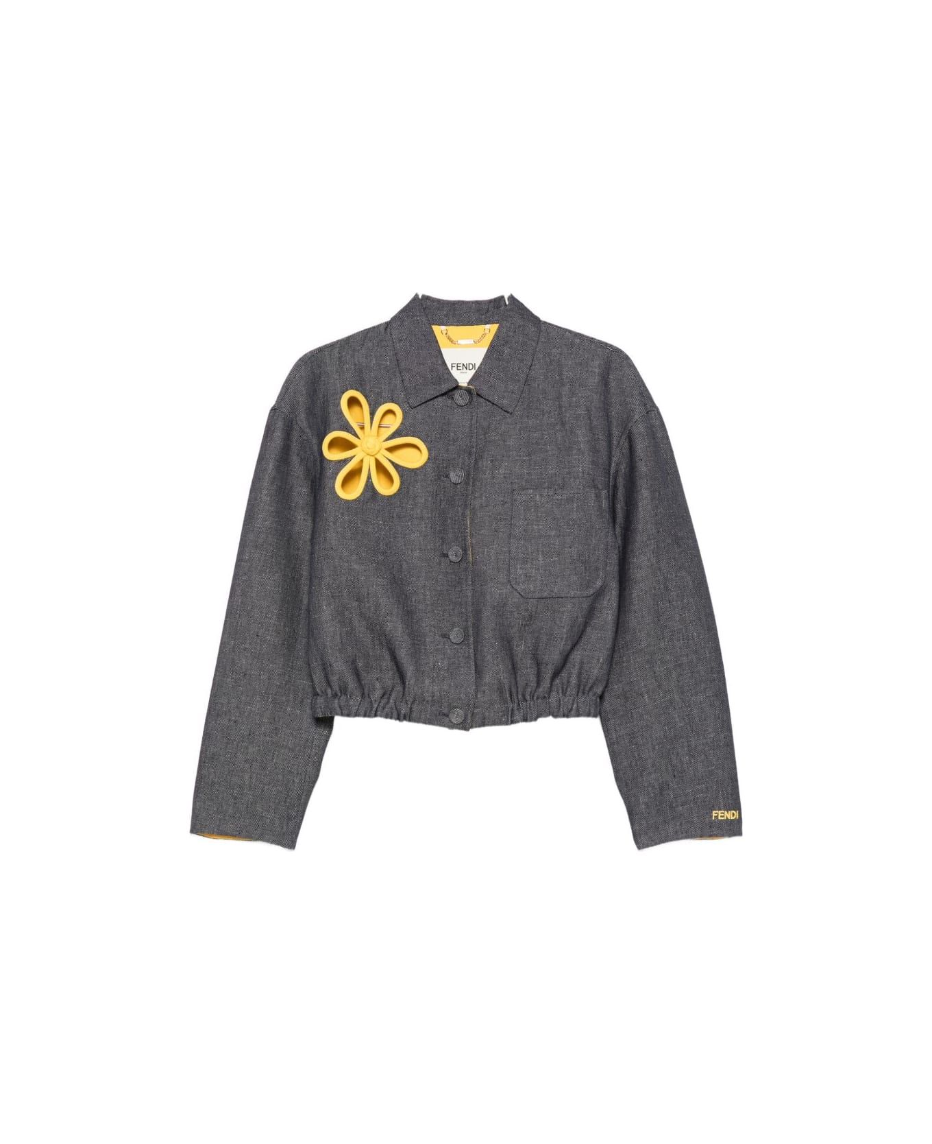 blue flower appliqué chest pocket button fastening elasticated hem long sleeves Composition: Natural (veg)->linen/flax50. , 0% Natural (veg)->cotton49. , 0% Natural (other)->silk1. , 0%