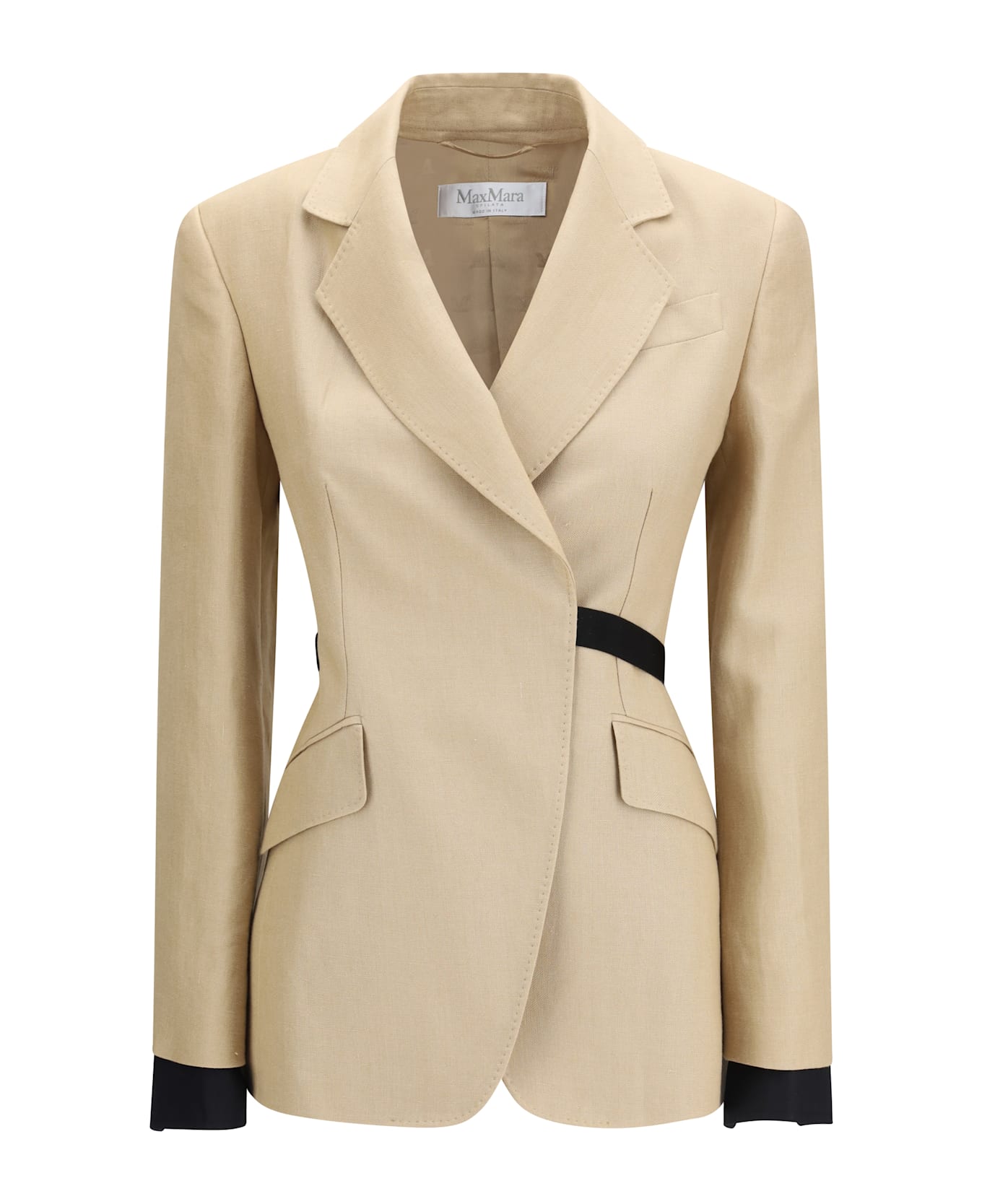 The fionda jacket by max mara stands out for a tailored construction that interprets classic tailoring with a contemporary accent. the fionda model by max mara features a classic notched lapel with stitching that defines the line of the garment with precision. the elastic belt introduces a dynamic element that enhances the silhouette, while front flap pockets complete the design with a functional detail. on the back, the double vent allows ease of movement, while linen cuffs complete the fionda jacket by max mara with a balance of structure and lightness.