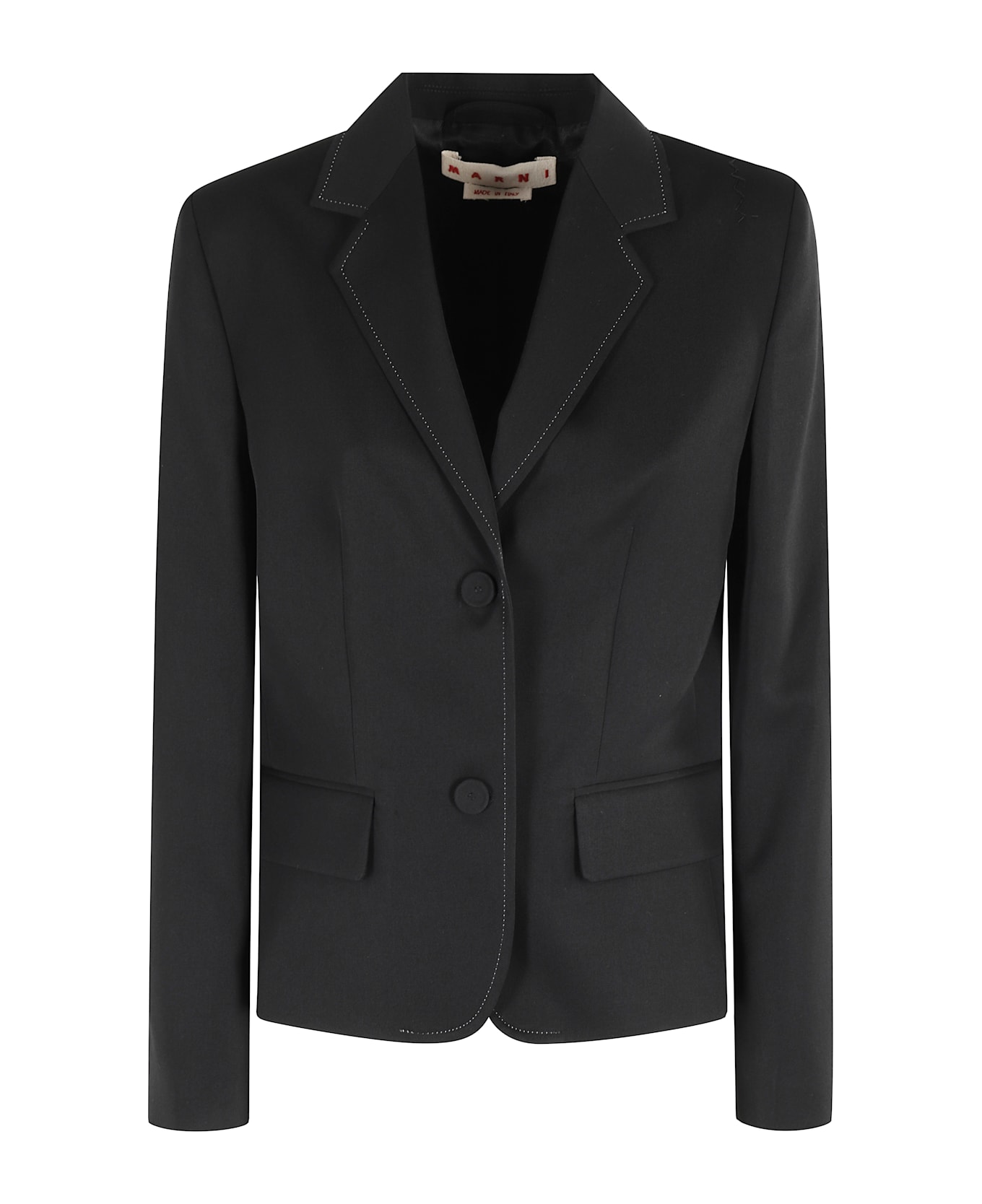 Single-breasted jacket -Marni -Black color -Long sleeve -Center button closure -Side pockets -Revers with contrast stitching