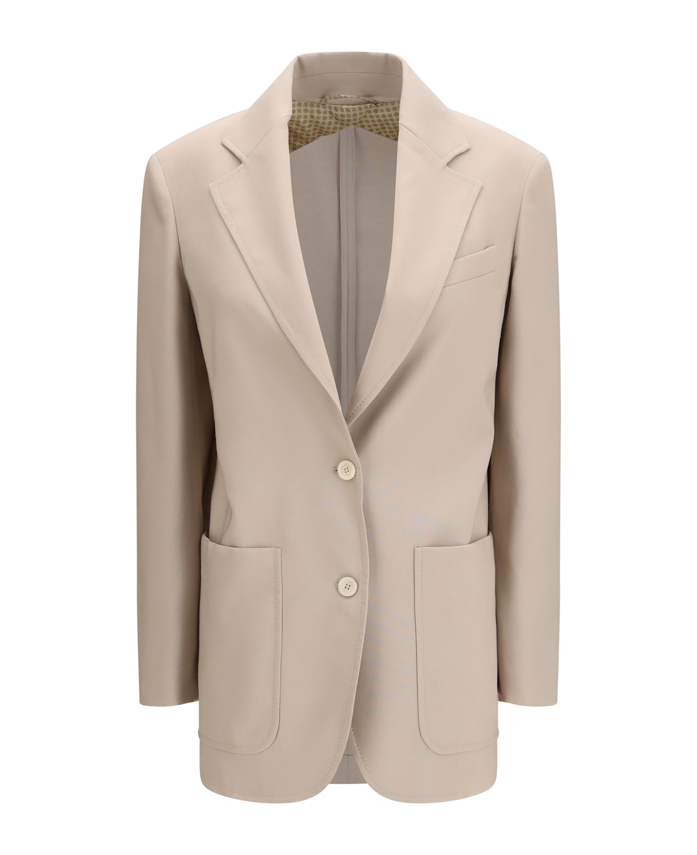The single-breasted wool-blend blazer by max mara offers understated elegance with a contemporary feel. featuring a front button fastening and classic notched lapels, it is finished with patch pockets at the front for a relaxed, modern touch. a versatile piece, perfect for refined yet effortless styling.