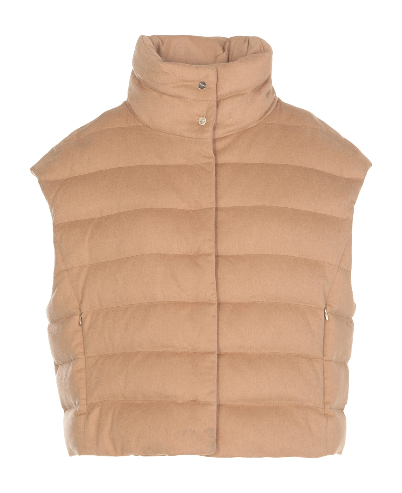 - Brown Herno camel padded and quilted vest for woman - High neck - Front buttons fastening - Two side zip pockets Composition: 100% Camel Fabric 2:, 100% Polyamide Details:, 100% Wool Filling:, 90% Goose Down, 10% Goose Feather