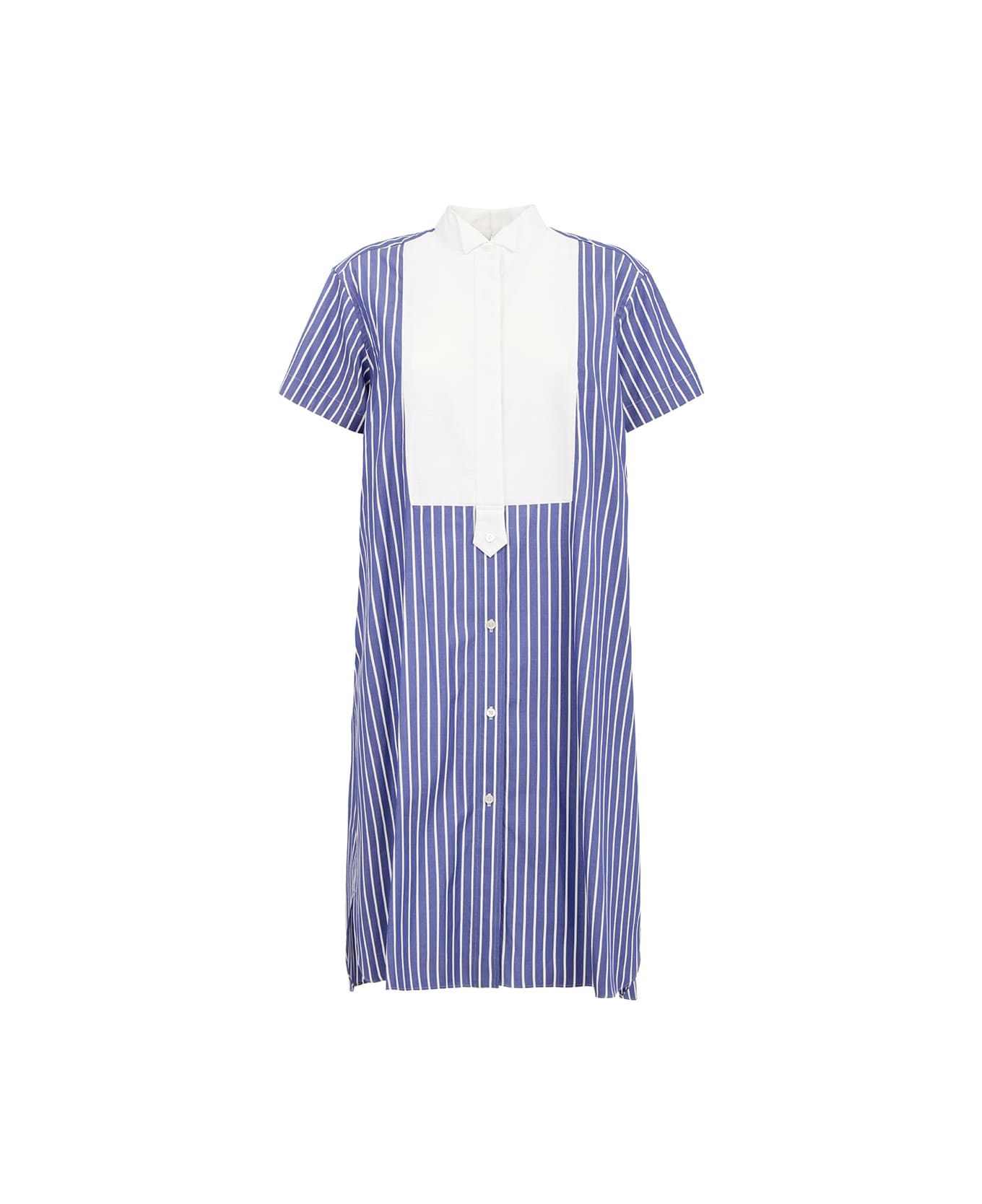COTTON POPLIN Dress in multicolor cotton, 100% cotton, short sleeves, pointed collar, front buttoning, knee lenght, comfortable fit, all-over-print, contrast panels, adjustable fastening, Made in Japan