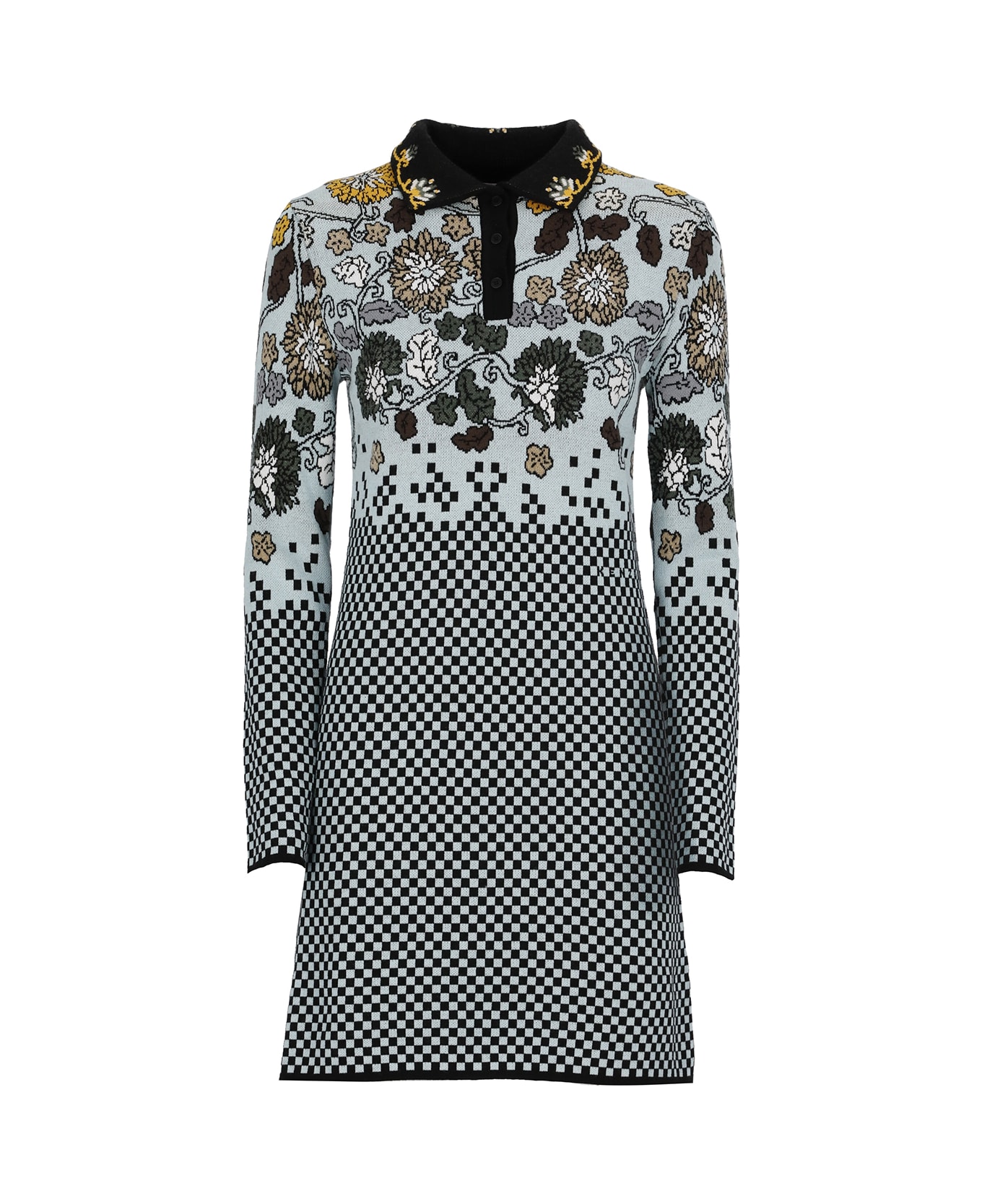 - Multicolor Kenzo cotton and wool blend chemisier dress for woman - Collar with buttons - Long sleeves - All-over Floral Archive pattern