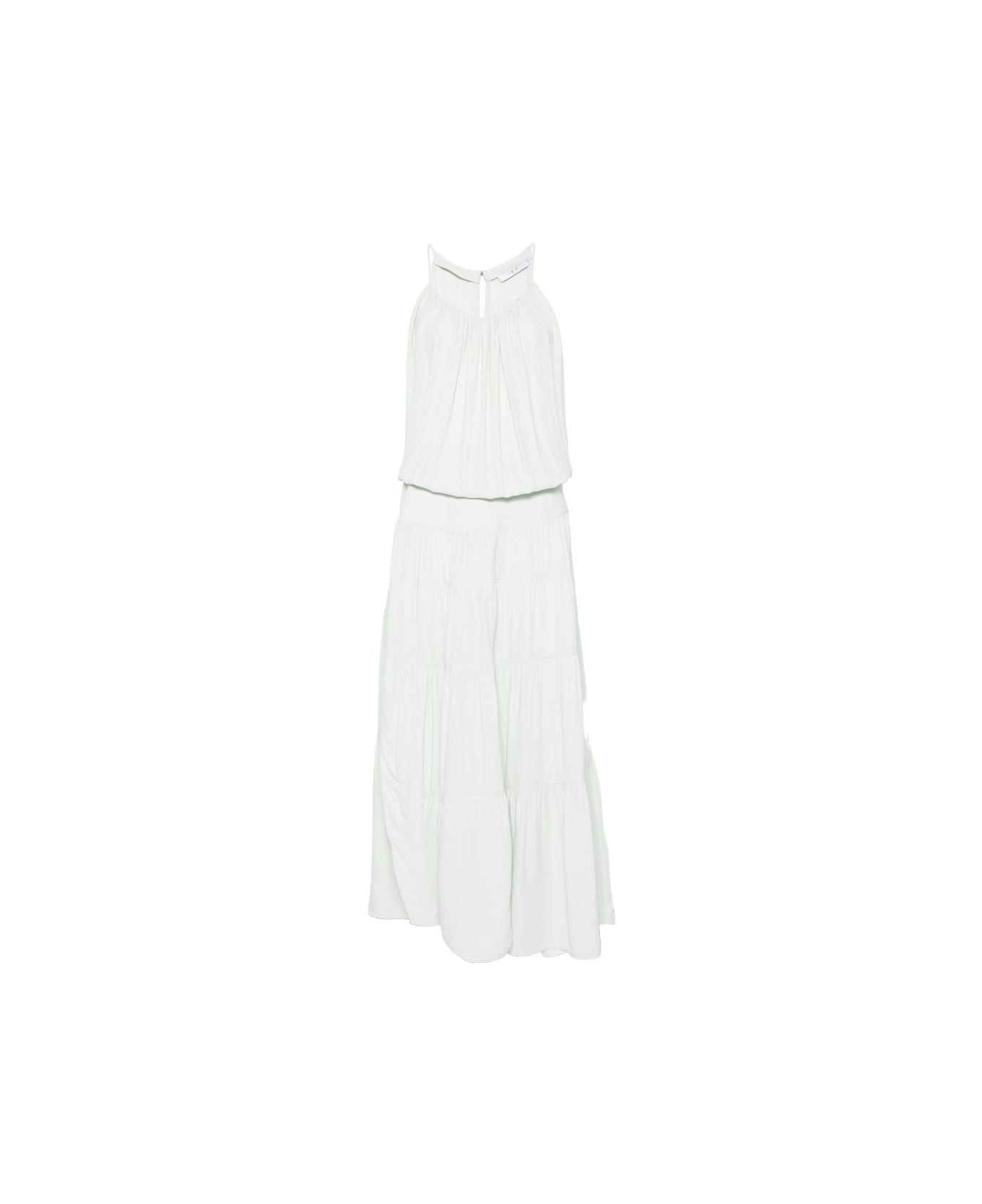 green tiered elasticated waist spaghetti straps round neck sleeveless