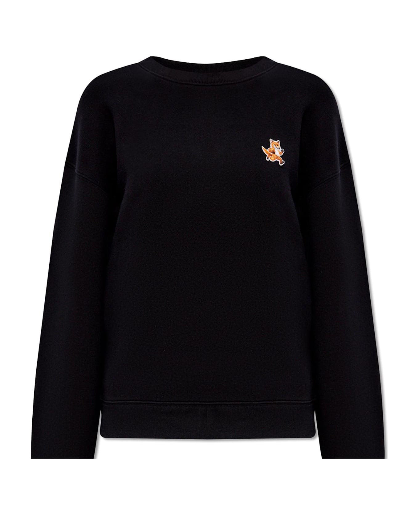 Black crewneck sweatshirt from Maison Kitsune. Made from cotton, this style showcases a logo-shaped patch on the front, long sleeves and ribbed trims on the collar, bottom hem and cuffs.