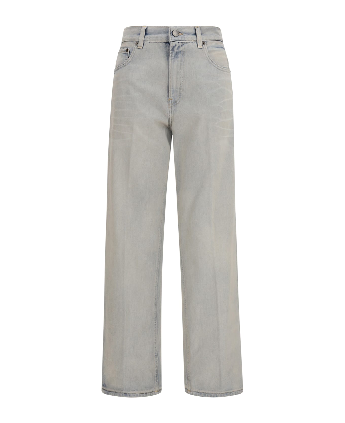 The bonnie light space jeans by haikure stand out for a straight and relaxed silhouette that expresses a contemporary denim aesthetic. the haikure jeans are crafted from light-wash denim with a natural worn-in effect. the five-pocket construction, belt loops and button and zip closure define the classic design of the garment. the logo label on the back completes the haikure bonnie jeans with a timeless casual style.