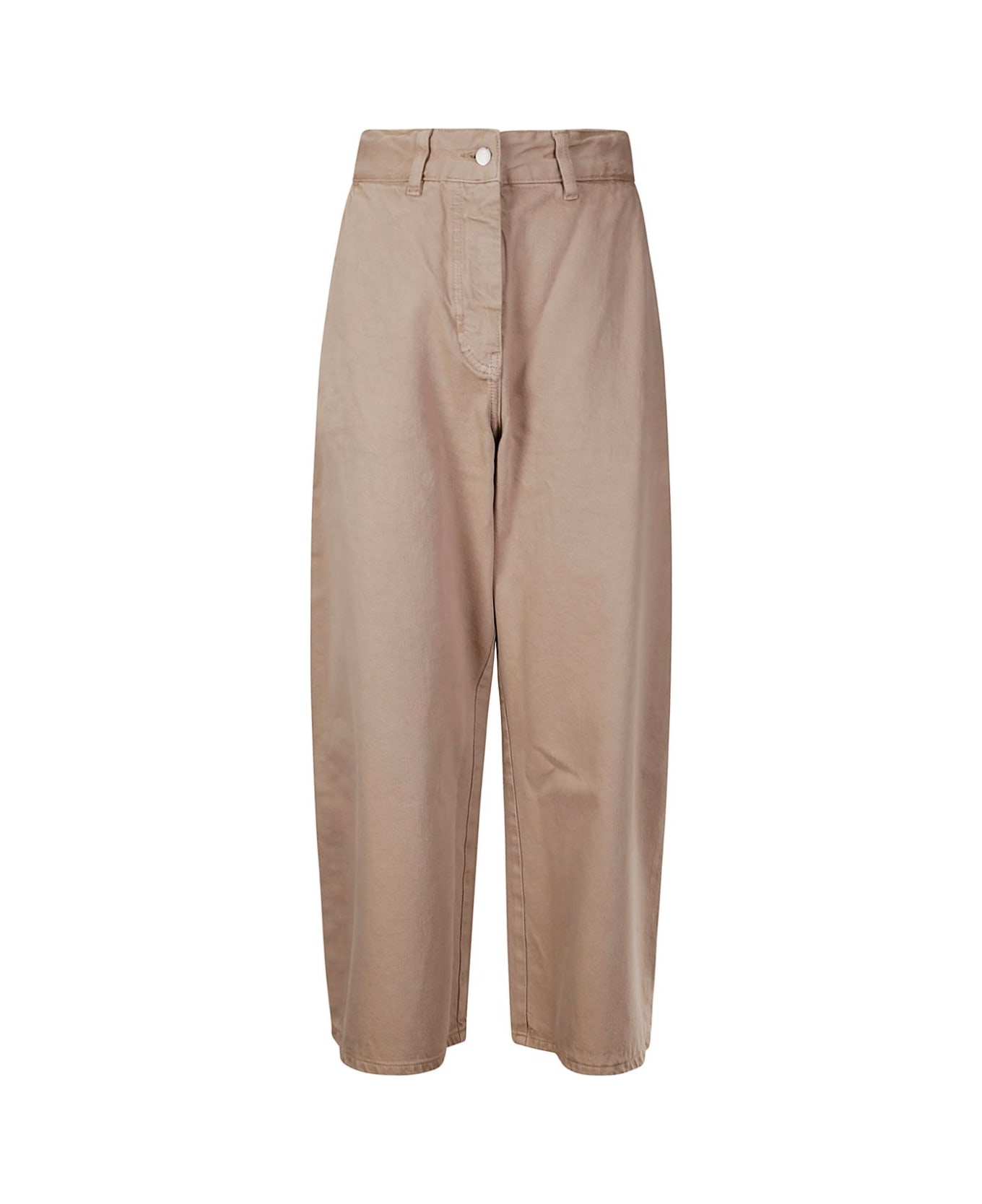 sand beige concealed fly and button fastening two side slash pockets two rear patch pockets belt loops