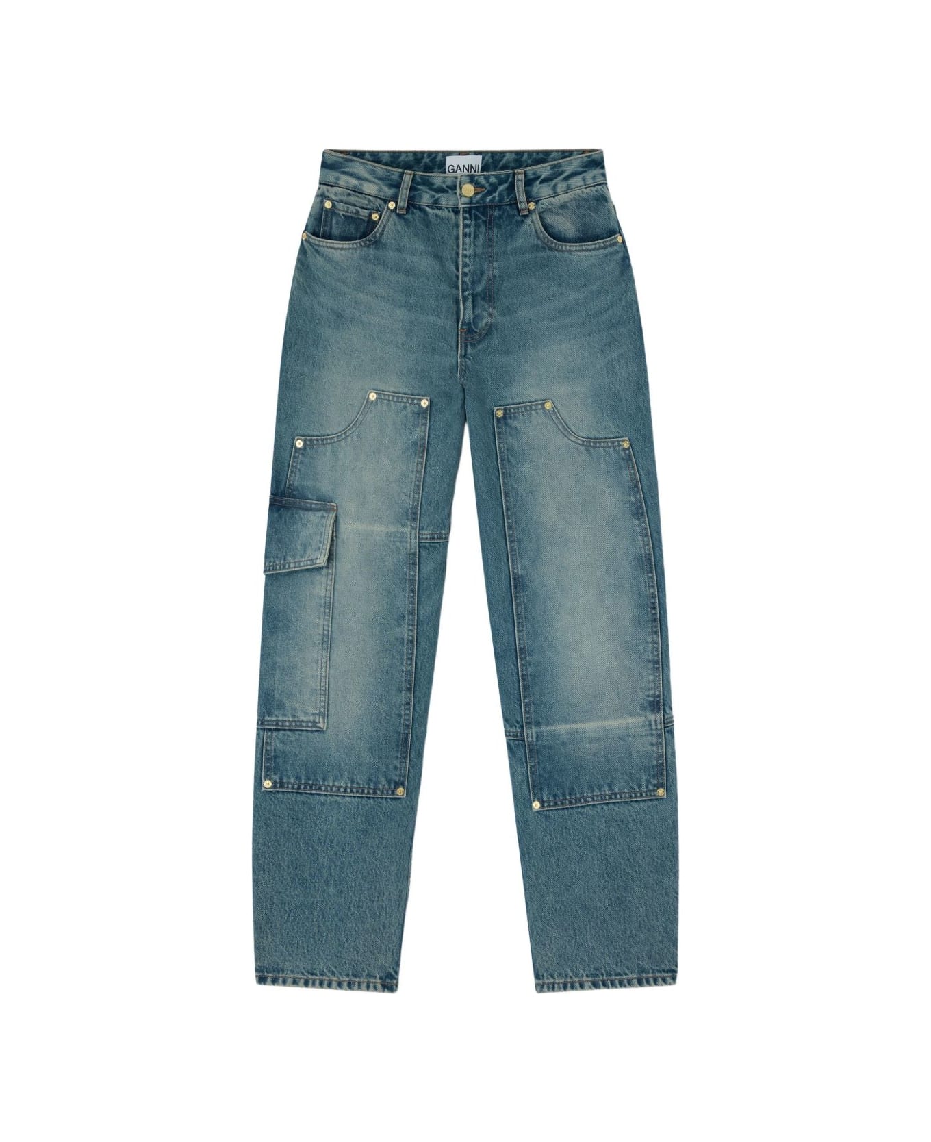 blue panelled design side flap pocket gold-tone hardware belt loops five pockets Composition: 100% Organic Cotton
