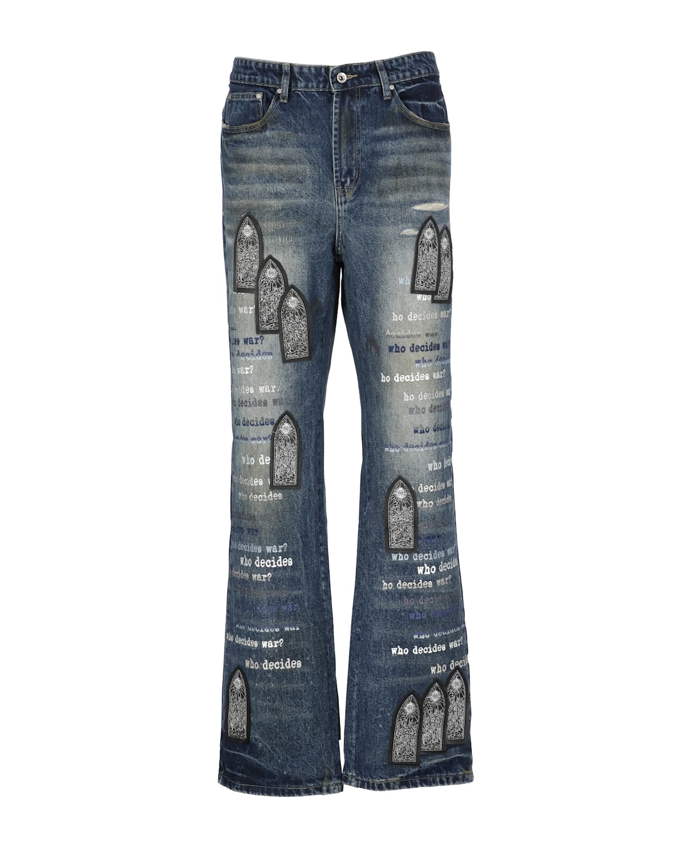 - Blue Who Decides War cotton jeans for man and woman - Belt loops - Five pockets - All-over contrasting color embroidered logo - All-over logoed patch - Front zip and button fastening