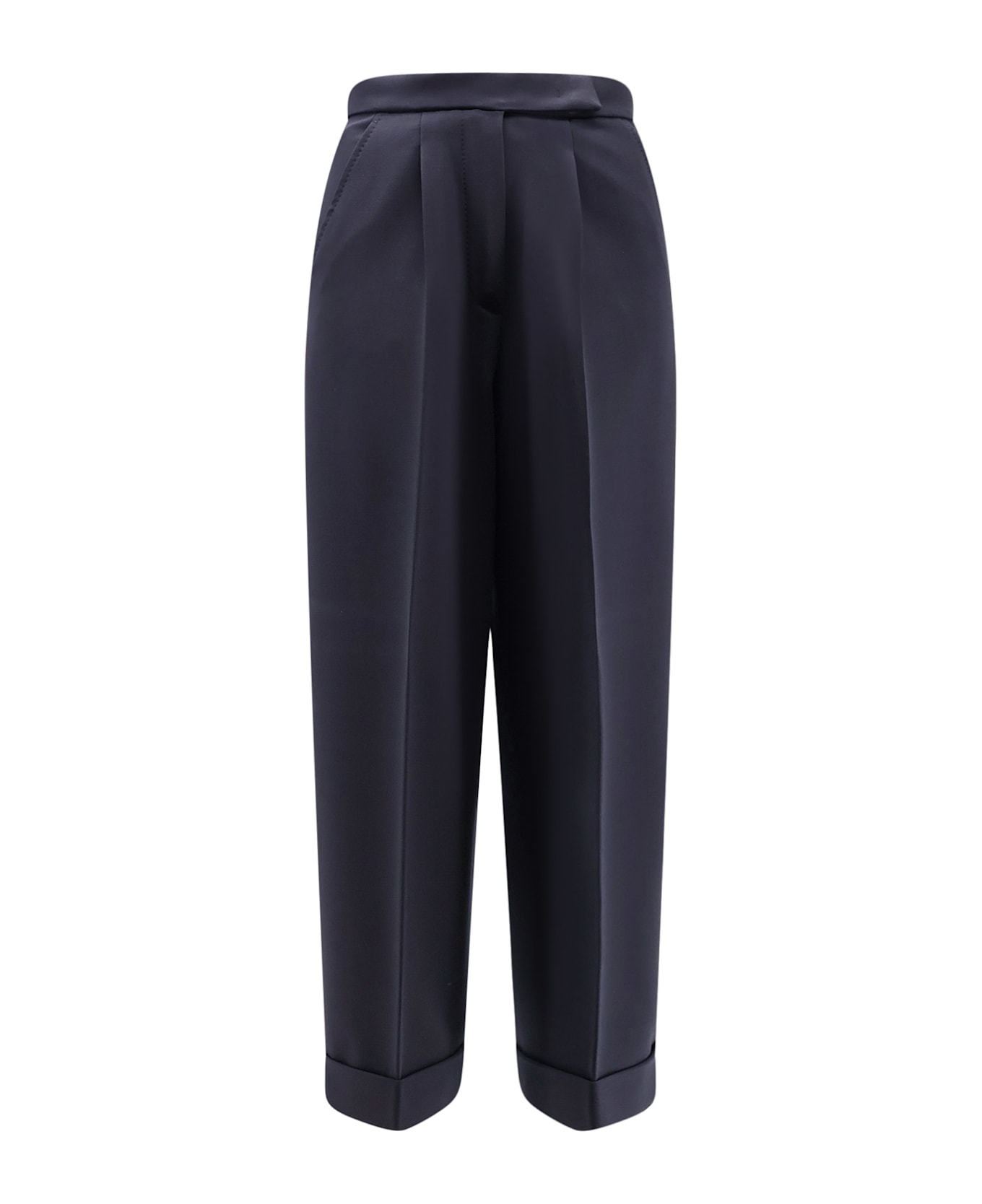 Zip, hook, and button closure Pinces detail Pockets with stitched profiles Wide leg Made in Italy 98% virgin wool, 2% elastane SKU: 2611131111600002