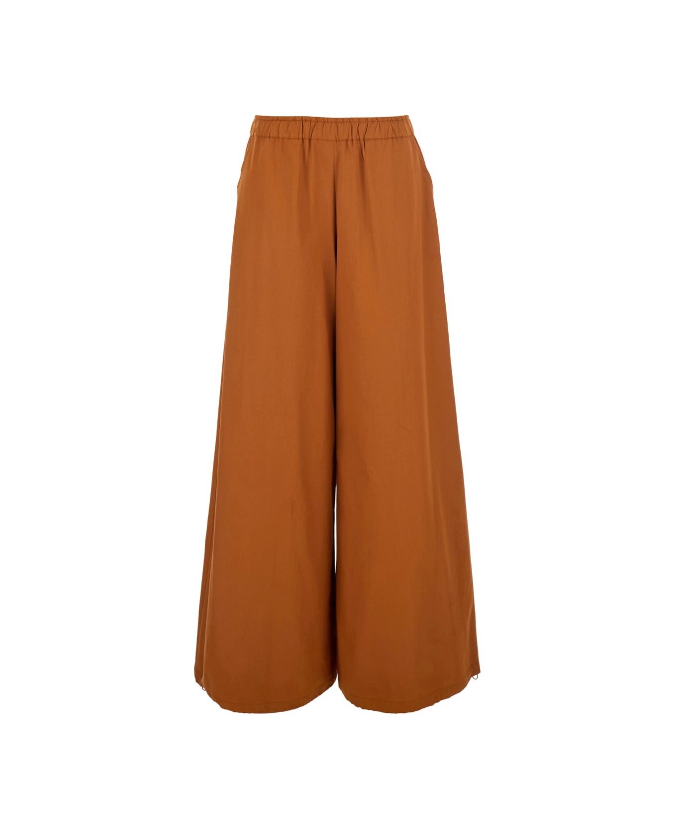 Pants with side pockets. The color is brown. They feature a high waist with a front closure and belt loops. The leg is straight, with a straight hem. The pants are made of tech fabric, offering a lightweight feel. In tech fabric. Regular fit.