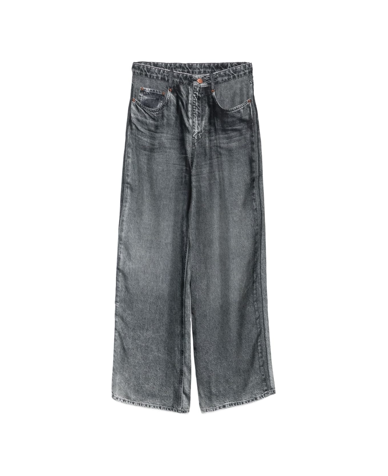 Black, wide leg, high waist, button fly, front pockets, back pockets, silk fabric, denim-print construction Composition: Silk, 100%