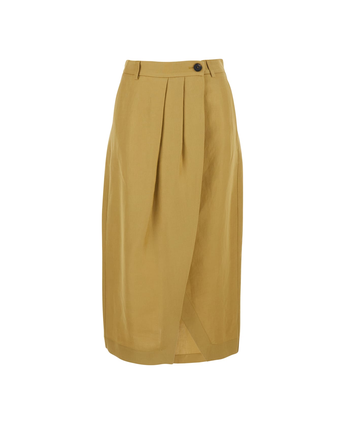 Skirt Beige Belt loops Front button closure Pleated details Two side welt pockets One back welt pocket Viscose and linen blend Regular fit
