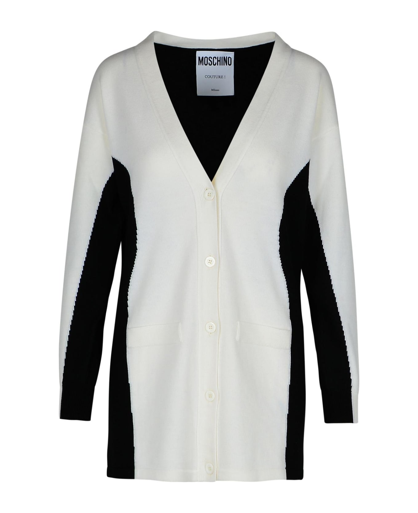 'V' neckline, central closure with tone-on-tone buttons, contrast side trim, two front pockets, ribbed cuffs Composition: 100% virgin wool