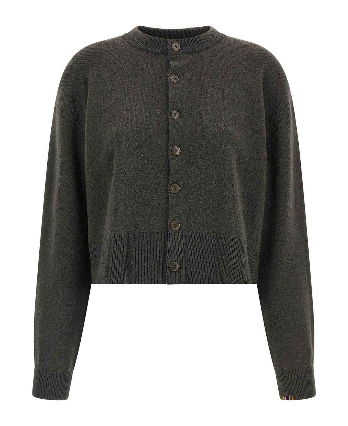 'N°170 Chou' cashmere blend cardigan with crew neck, front corozo button closure, long sleeves with cuffs and dropped shoulders. Composition: 88% ws, 10% pa, 2% ea