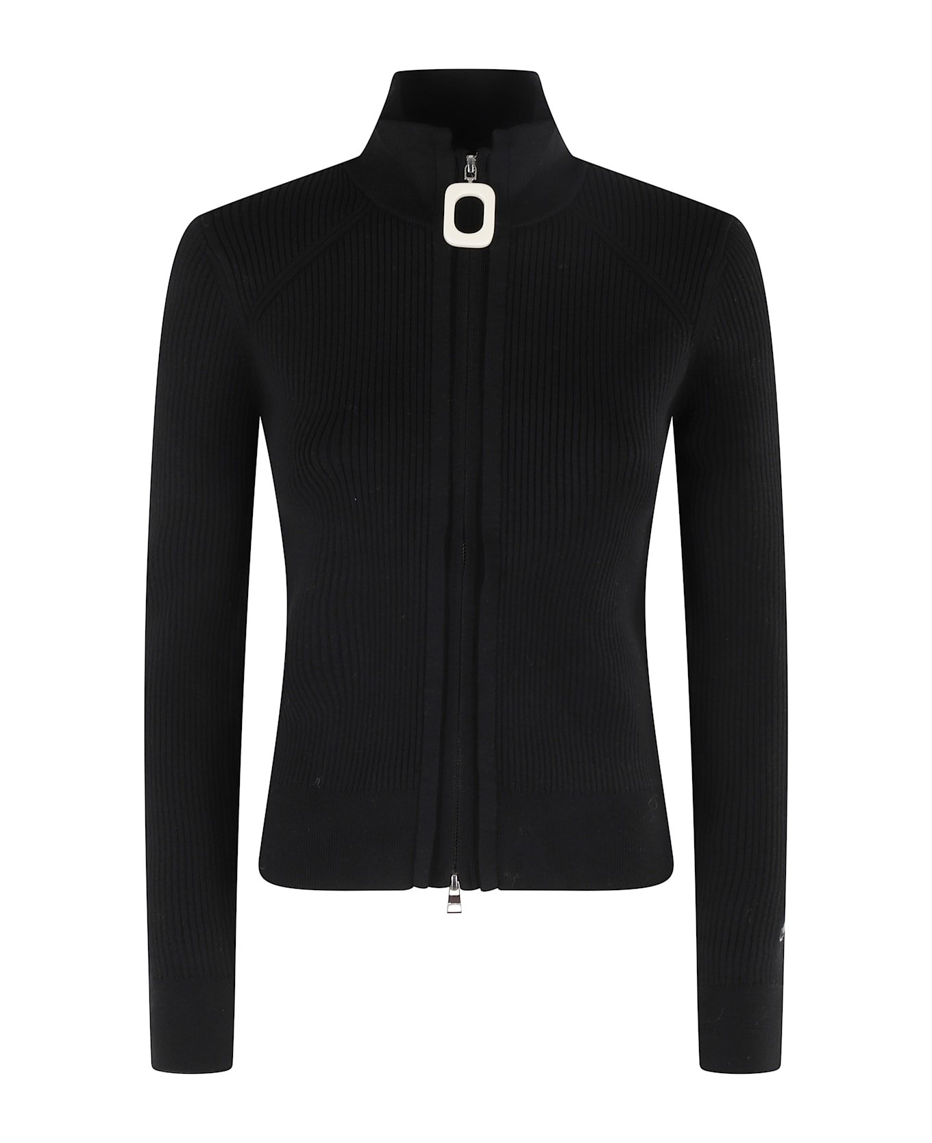 Sweater - Jw Anderson - Fitted Zip Up Cardigan model - Black color - Ribbed knit - Long sleeves - High neck - Front zipper closure