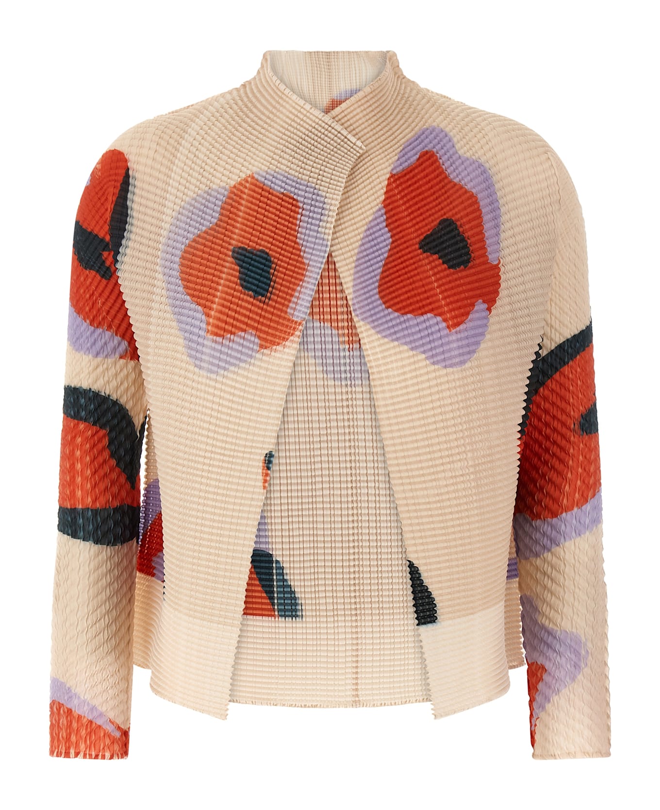 'Verve Pleats Top' cardigan in pleated fabric with all-over print, front opening, long sleeves. SUSTAINABLE: product made from recycled polyester.