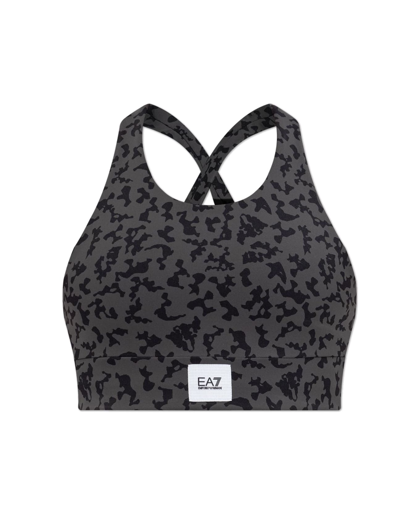 Elevate your athletic wardrobe with the EA7 Emporio Armani Training Top, a distinguished piece that seamlessly fuses high-performance design with unmistakable Italian elegance. Crafted from a premium, technical fabric blend, this form-fitting, cropped top ensures superior comfort, breathability, and flexibility during every workout. The iconic racerback silhouette with wide, intersecting straps and a deeply cut back accentuates an athletic physique while guaranteeing unrestricted movement. Its sophisticated gray hue is enlivened by an abstract, camo-inspired motif, delivering an energetic yet refined look. A signature white patch with the bold, black EA7 Emporio Armani inscription sits beneath the bust, affirming this top's pedigree and exclusivity. Why choose this product? High-end technical fabric for exceptional fit and breathability Distinctive racerback design for optimized mobility Unique patterned finish for dynamic style Statement EA7 Emporio Armani branding for unmistakable prestige Perfect fusion of comfort, performance, and luxury