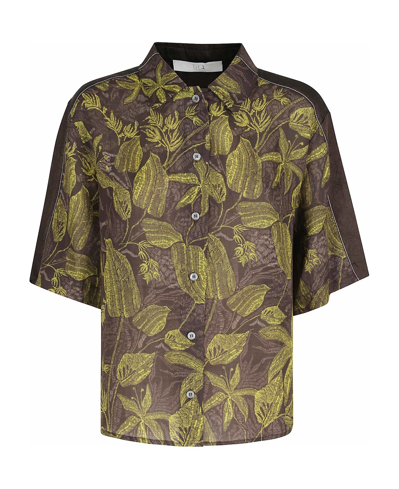 Category: Shirt Article: Plinio Shirt Brand: Canvas Color: Brown Collar: Classic with button Details: Patterned with green plants Closure: With buttons on the front SIZE AND FIT Fit: Soft Sleeve: Short