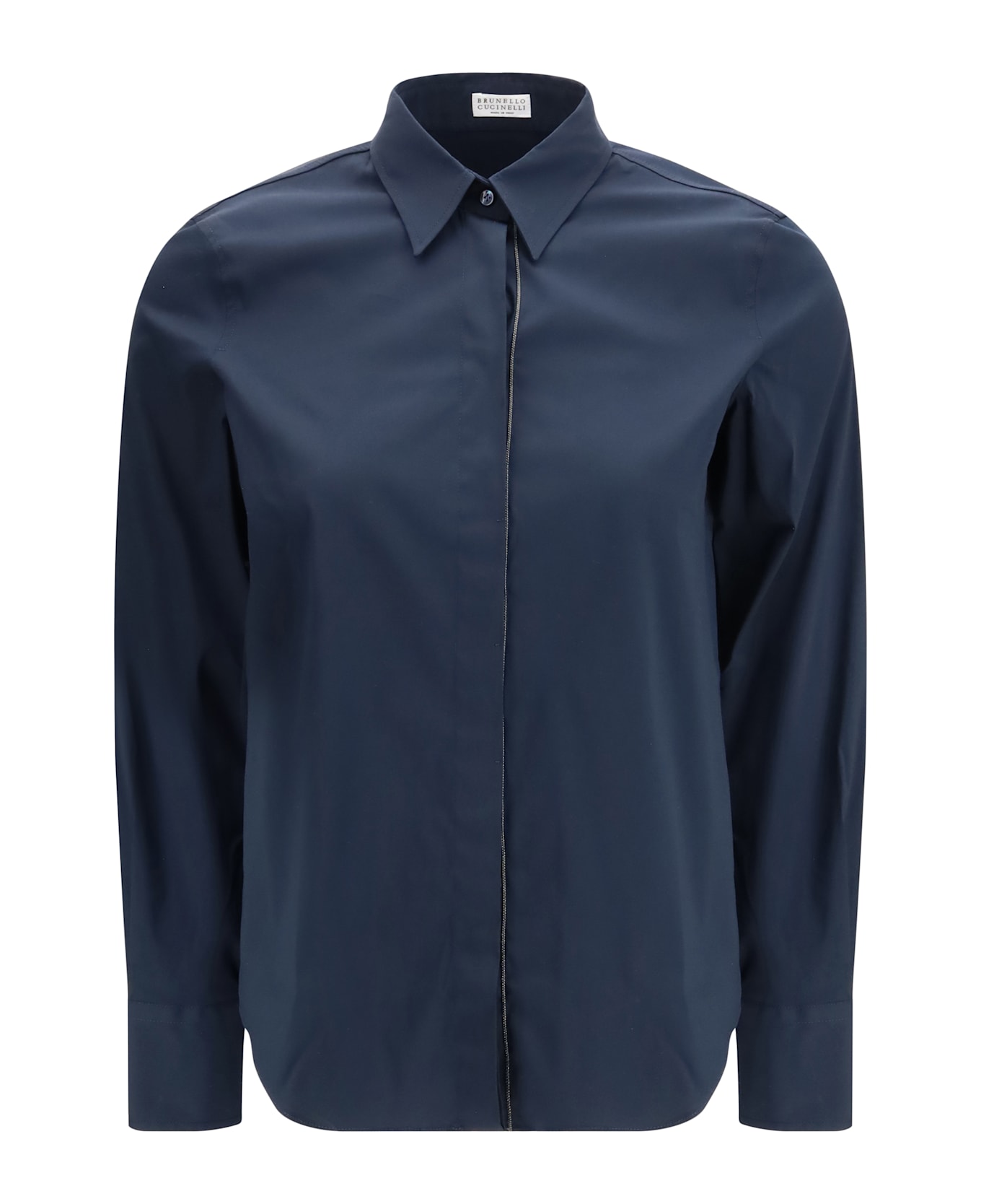 The cotton shirt by brunello cucinelli is an elegant and refined piece, characterized by a classic collar that gives it a timeless look. the front closure with hidden buttons, embellished with iconic jewels, adds a touch of luxury and sophistication. the adjustable cuffs with buttons allow you to adapt the fit for greater comfort. the monochrome pattern gives it a clean and versatile look, making this shirt perfect for both formal and casual combinations, without ever sacrificing class.