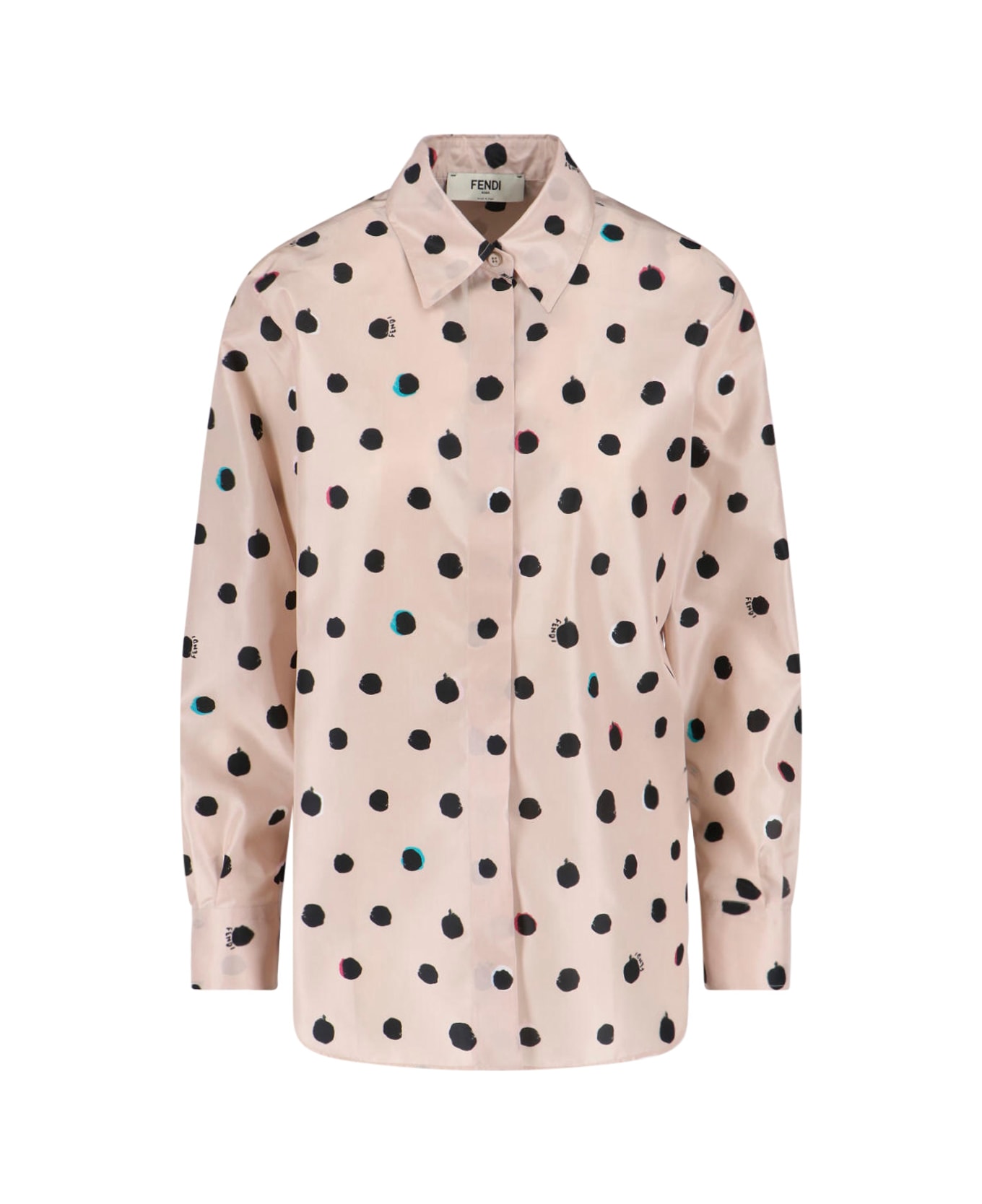 Fendi silk shirt, cream, polka dot pattern, collar, long sleeves, front button closure, straight hem. Composition: 100% Silk