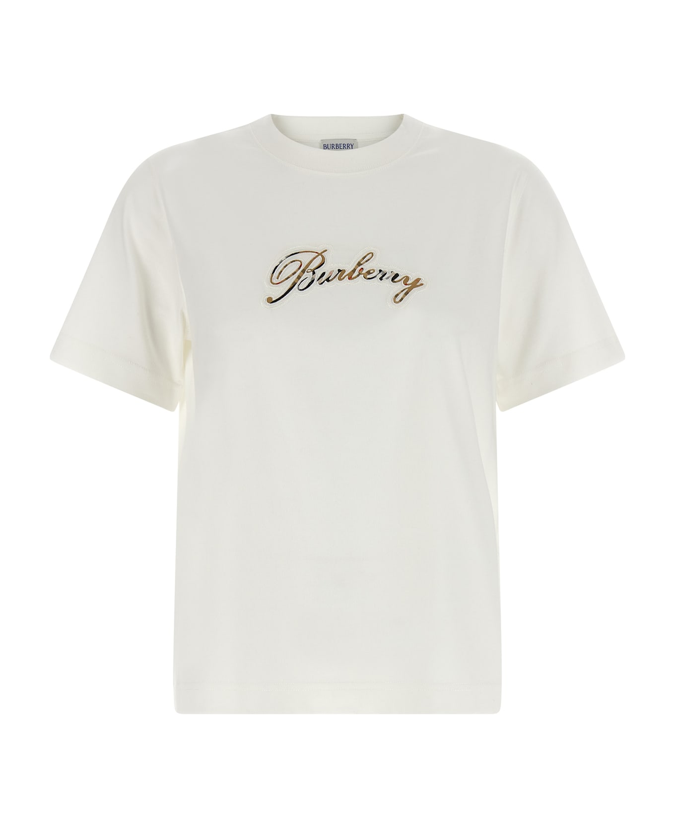 'Frankie' cotton jersey T-shirt with chain stitch italic logo with Burberry Check lining, crew neck, short sleeves.