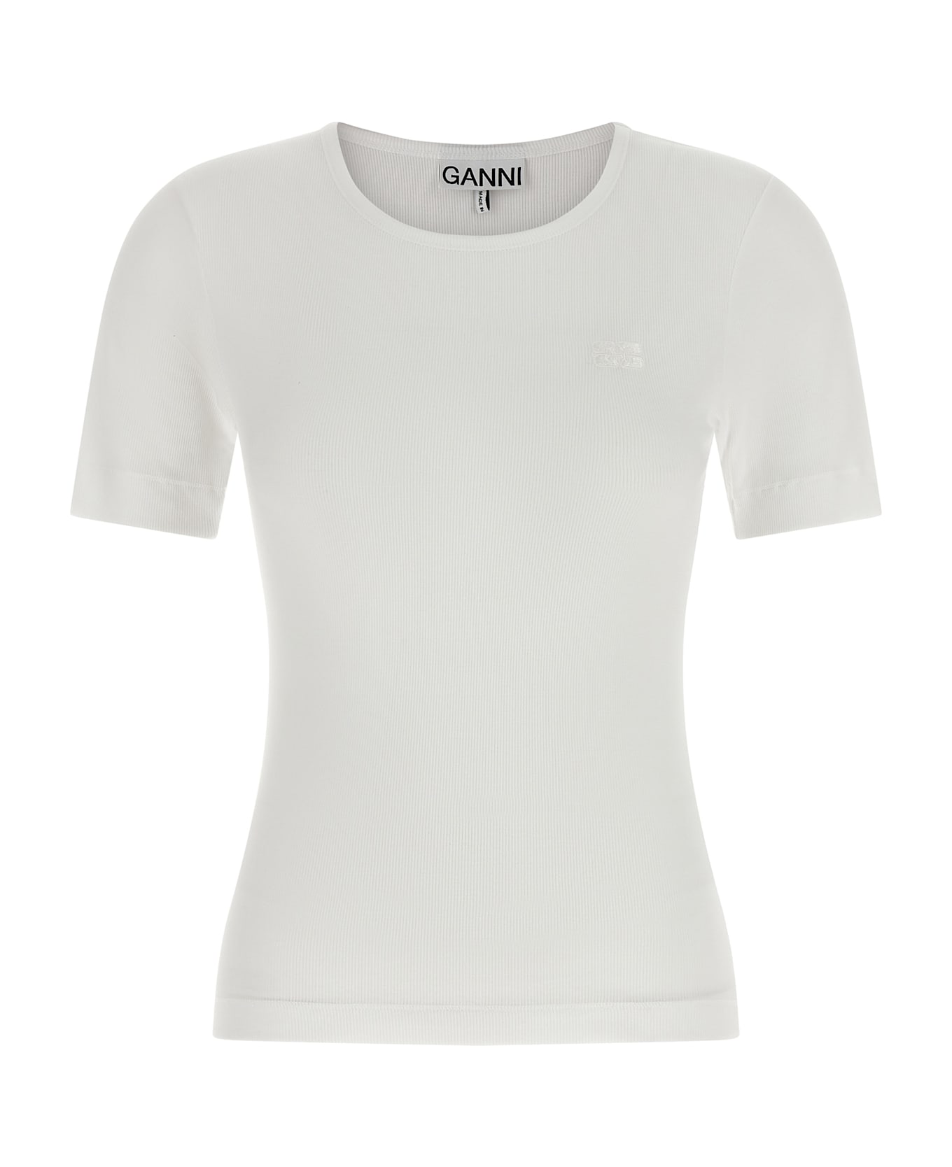 Ribbed stretch cotton t-shirt with tone-on-tone logo embroidery on the front, crew neck, short sleeves. SUSTAINABLE: This product is made of organic cotton. Composition: 95% organic cotton 5% elastane