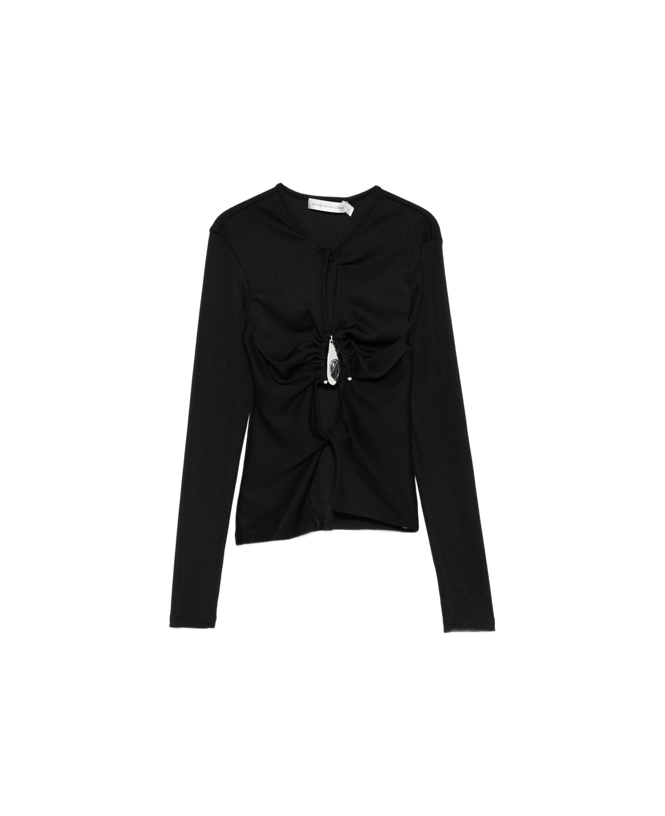 black pendant detail twist front long sleeves round neck
