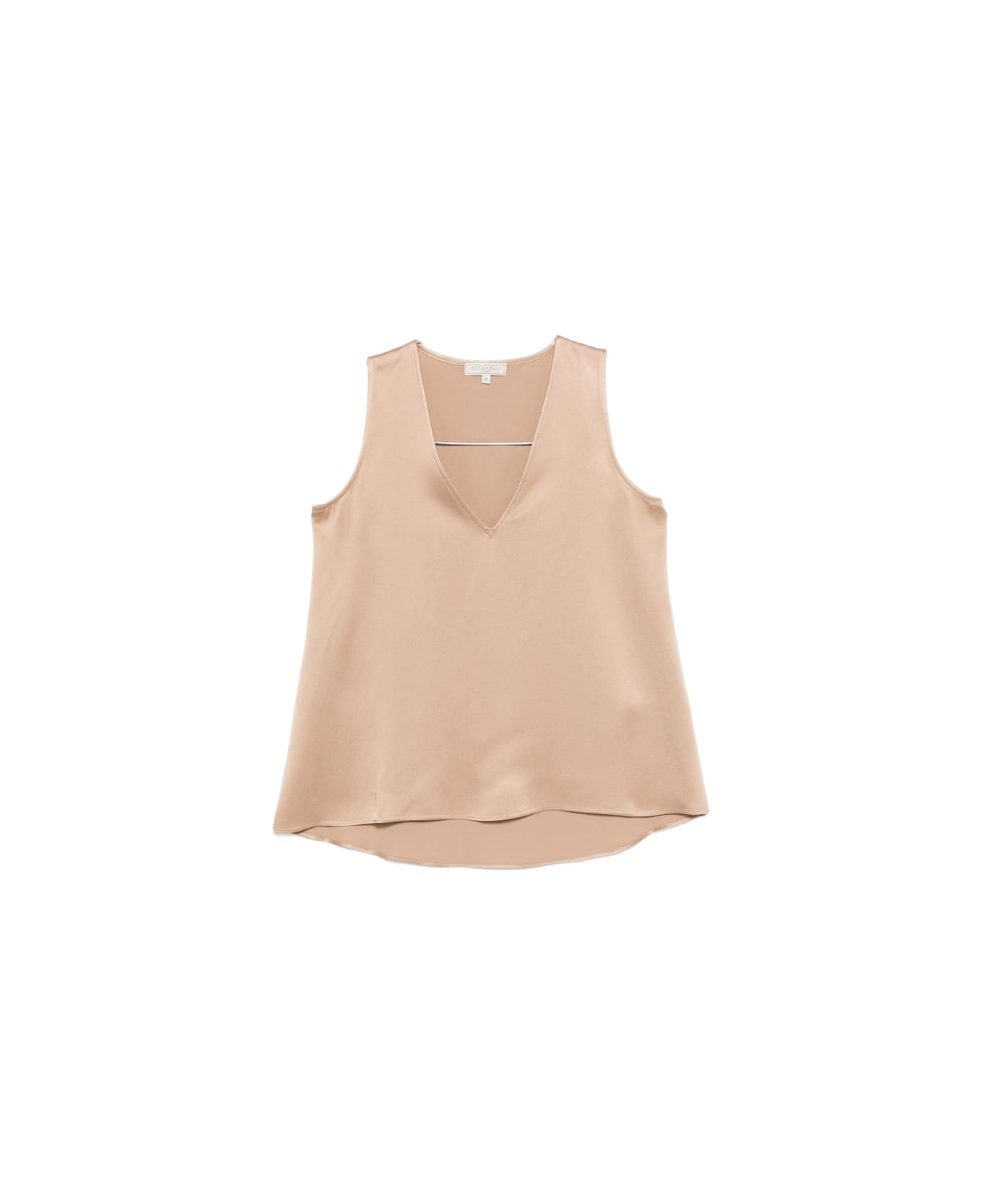 beige V-neck sleeveless curved hem