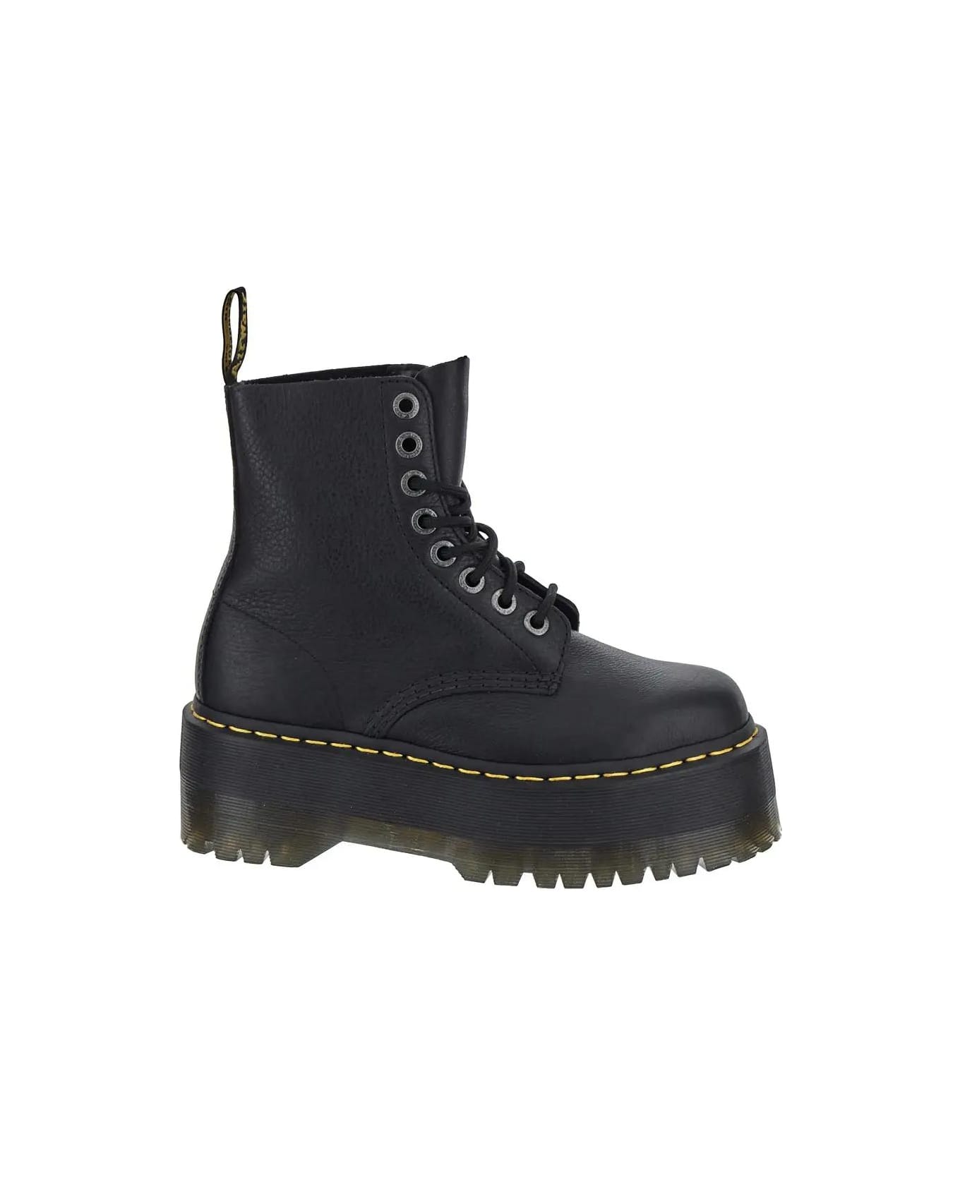 Dr Martens platform boot in black grained leather with lace-up closure, round toe and black rubber sole with yellow stitches. Composition: 100% LEATHER