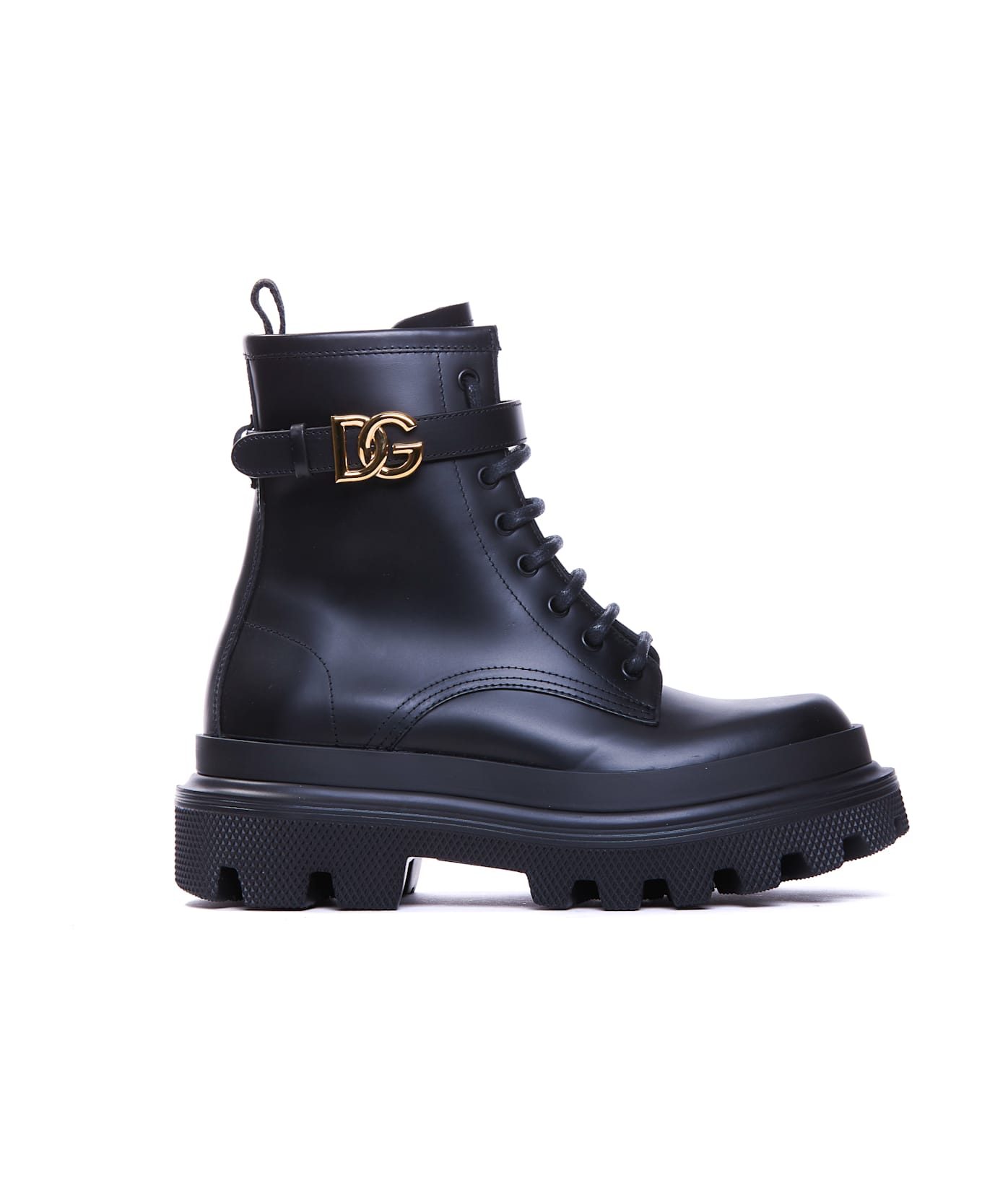 Dolce&Gabbana black booties, laces closure, round toe, lateral plaque DG logo