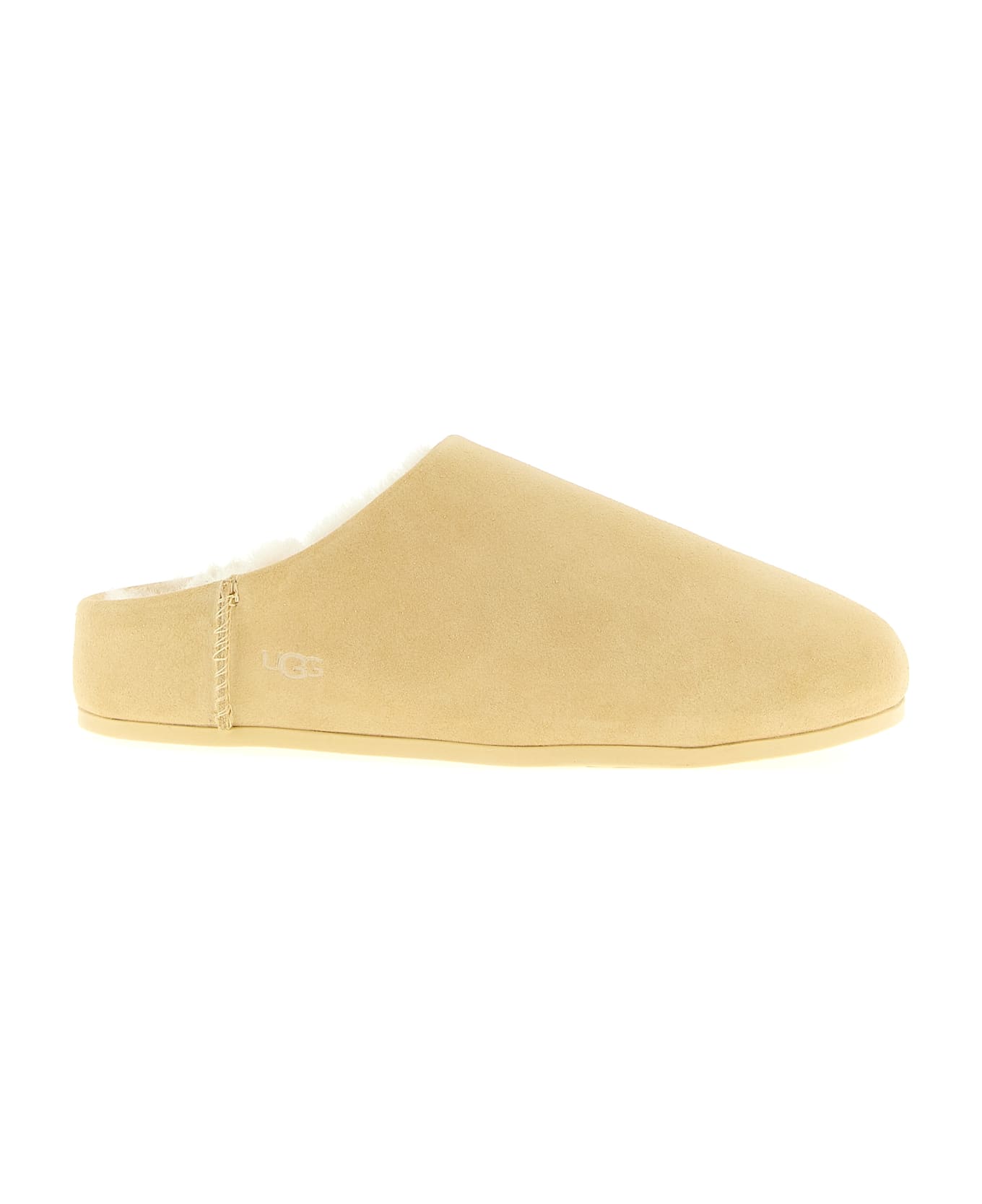 'Elea' suede slip-on with slightly padded foam silhouette, sheepskin lining and insole, embossed logo on the side, rubber sole.