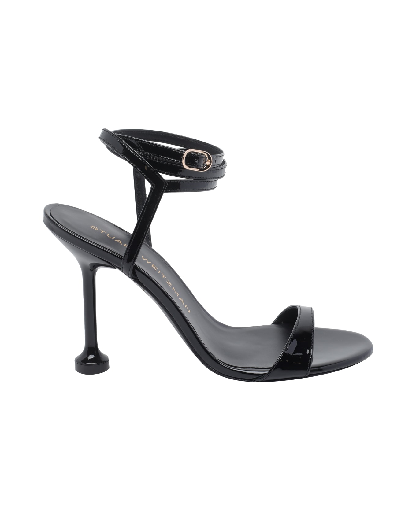 Stuart Weitzman black Nudistini pump sandals, round toe, leather upper, lateral buckle closure